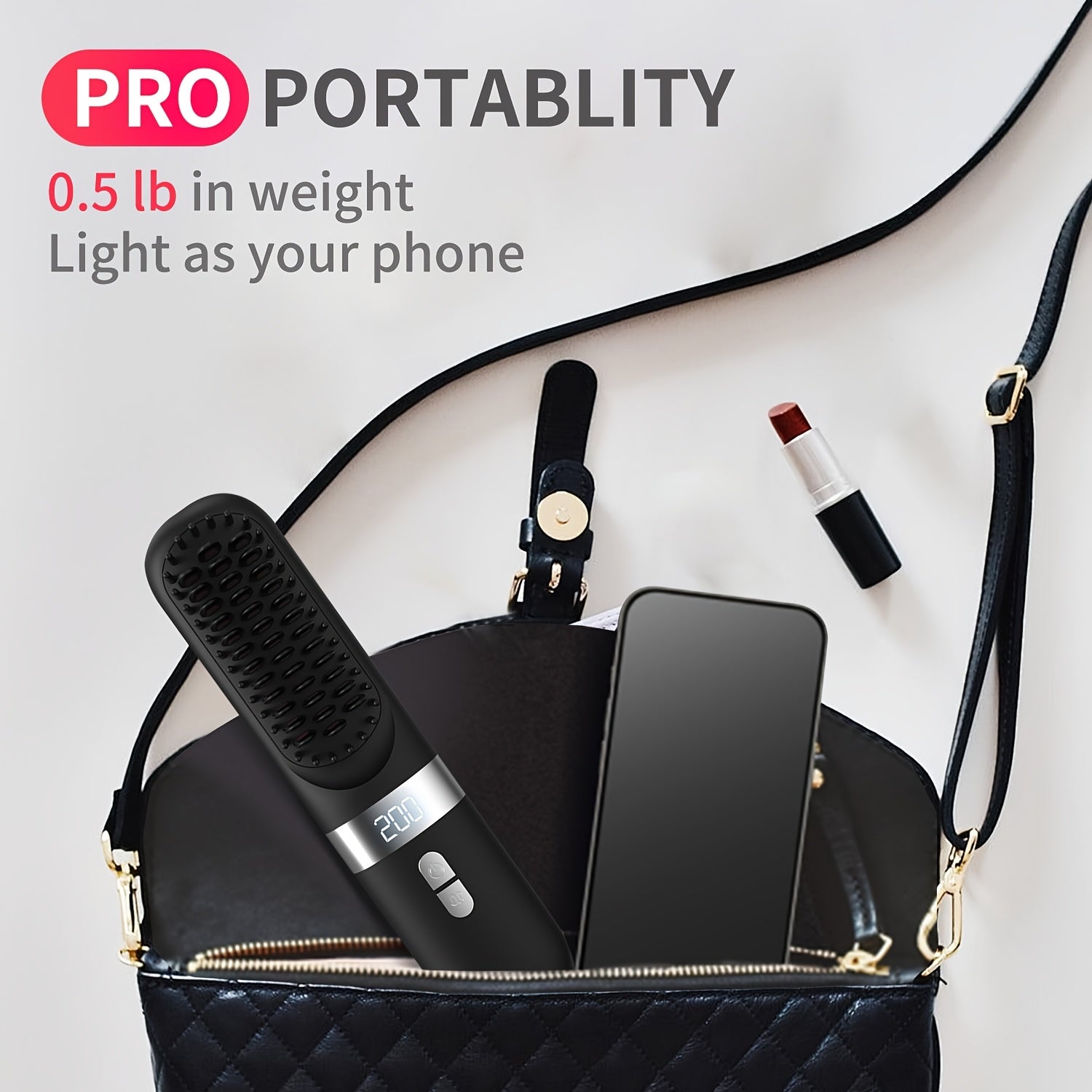 Travel-size cordless hair straightener brush for women fast heating USB rechargeable