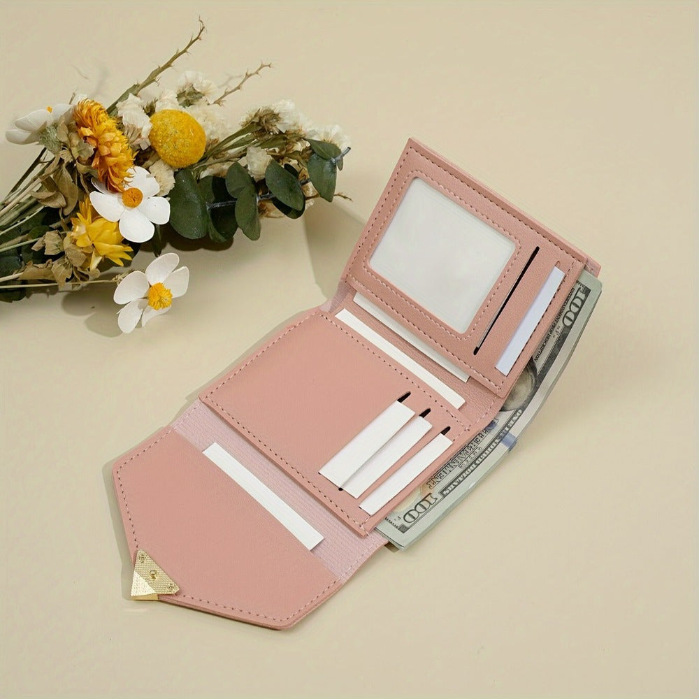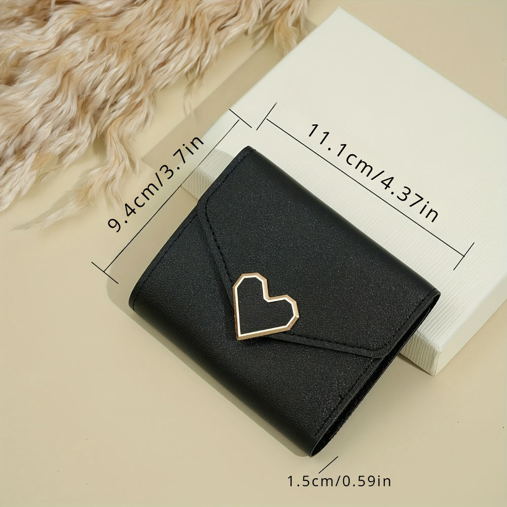 Korean-Style Heart-Shaped Mini Wallet with Card Slots Coin Pouch Hand-Washable Black Pink