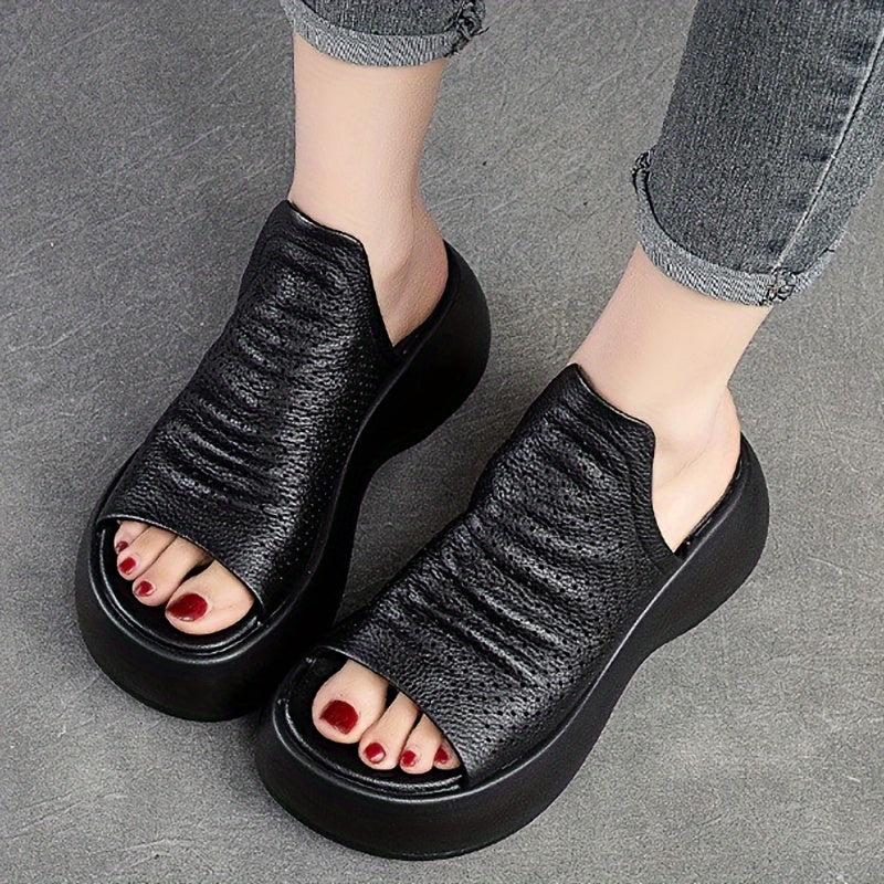 Women's Platform Sandals with Cut Out Design Open Toe Rubber Sole