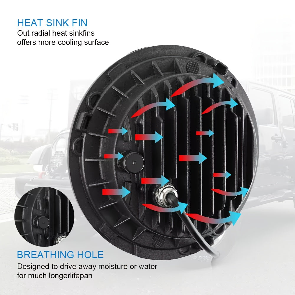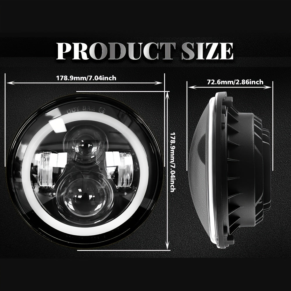 17.78cm LED Headlight Bulbs with H4 Halo Angle Eyes for Motorcycles Off-Road Weatherproof 12V 24V
