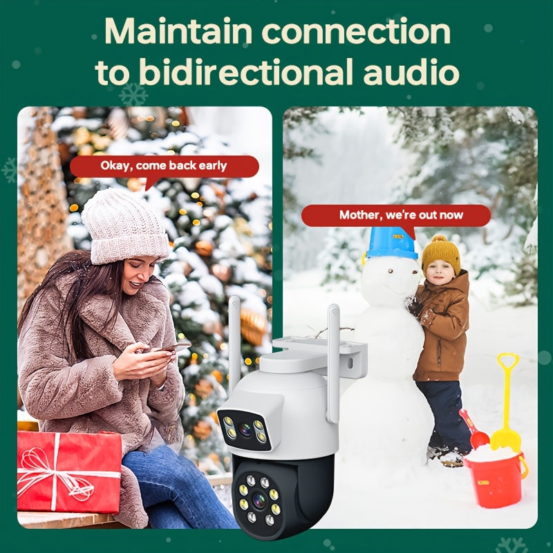 Dual Lens 4MP Outdoor Security Camera with 360 Degree View Motion Tracking Spotlight Siren Two-Way Audio IP65 Waterproof
