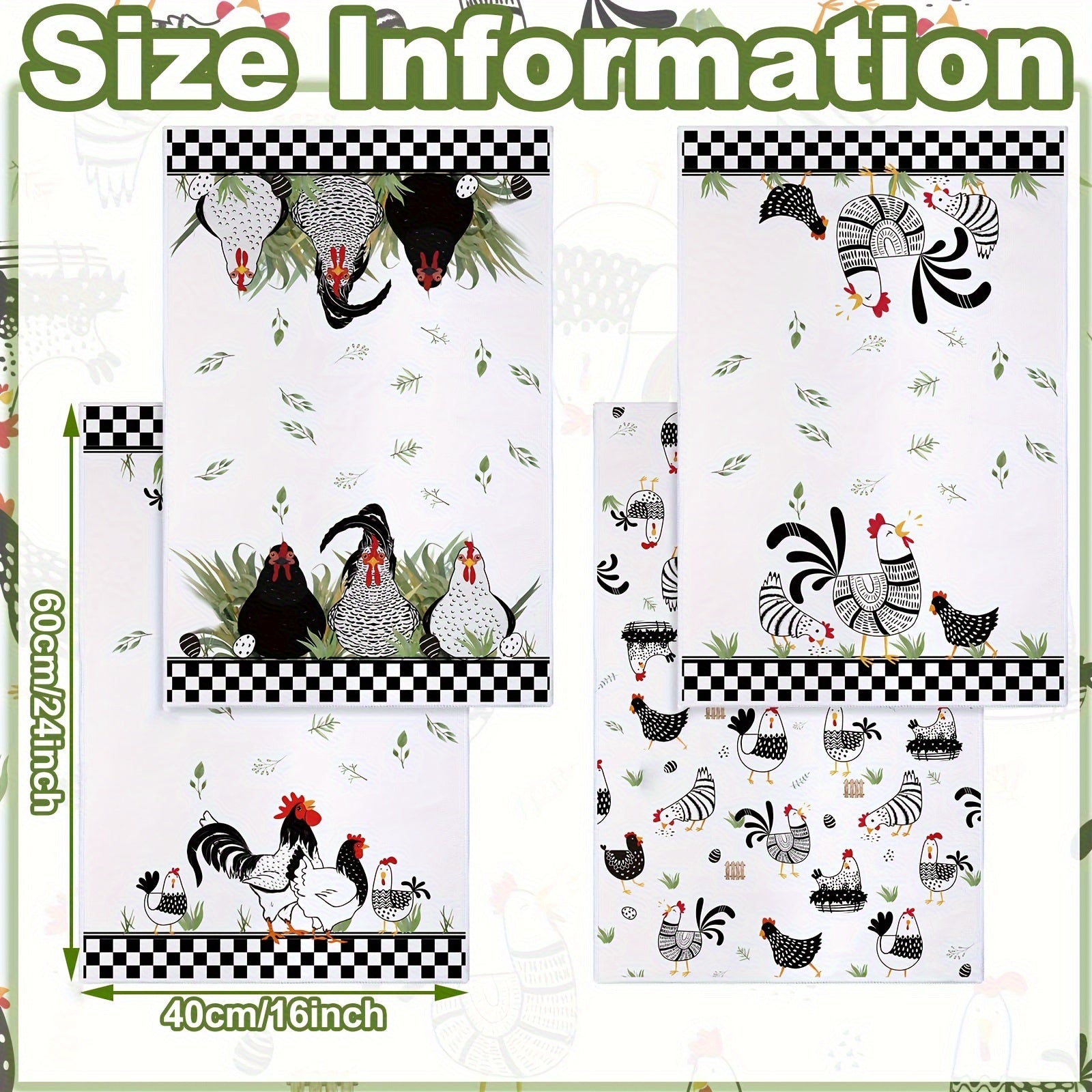 Buffalo Plaid Rooster and Hen Hand Towels for Farmhouse Kitchen Decor