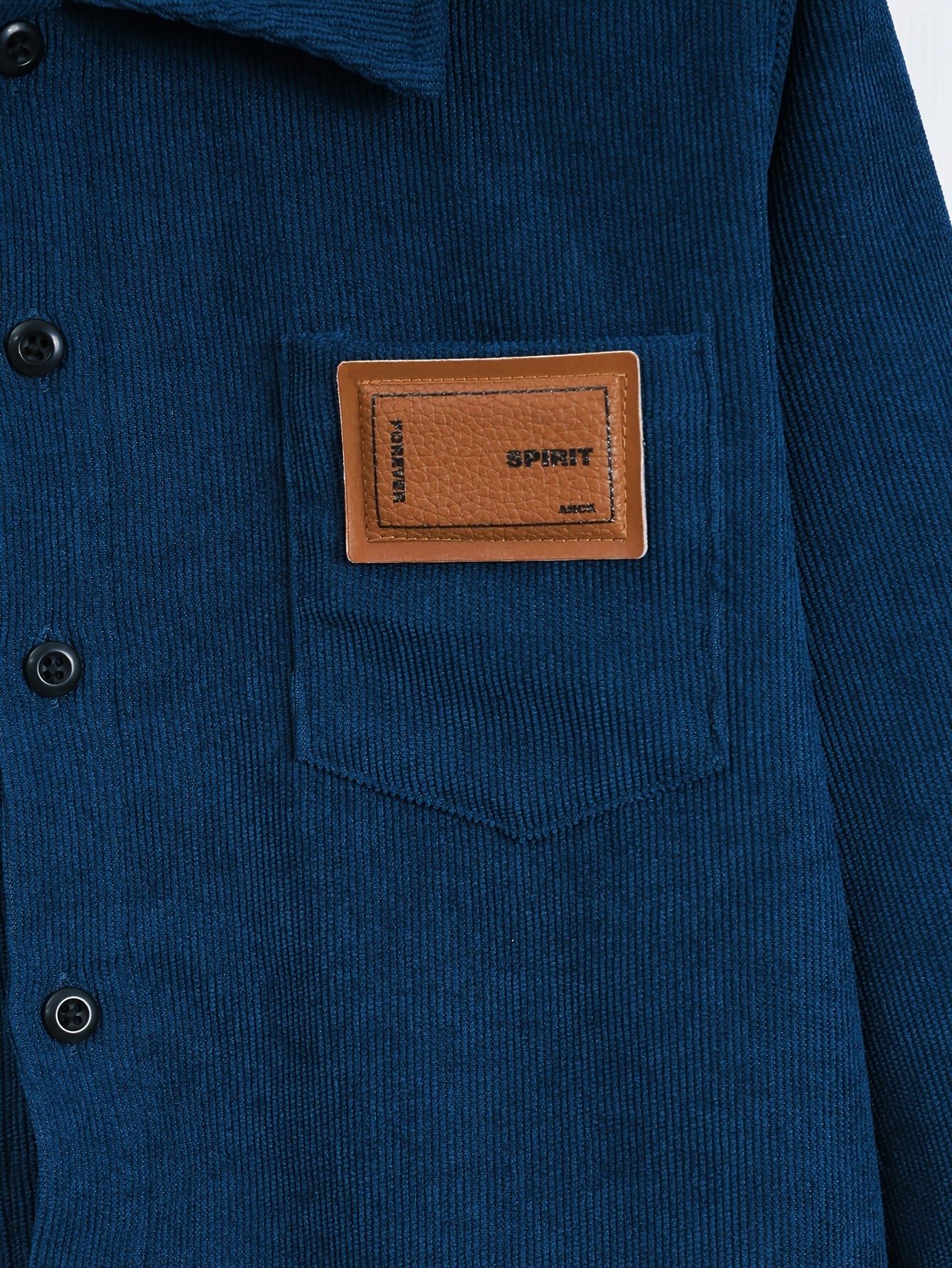 Kids Boys Navy Blue Corduroy Two-Piece Set with Shirt and Pants