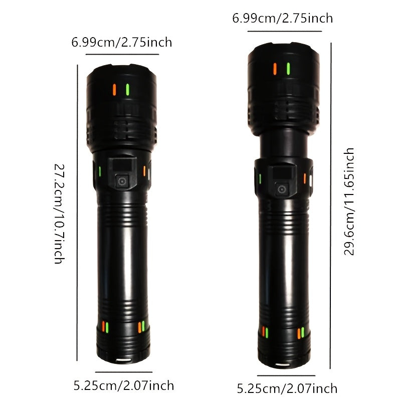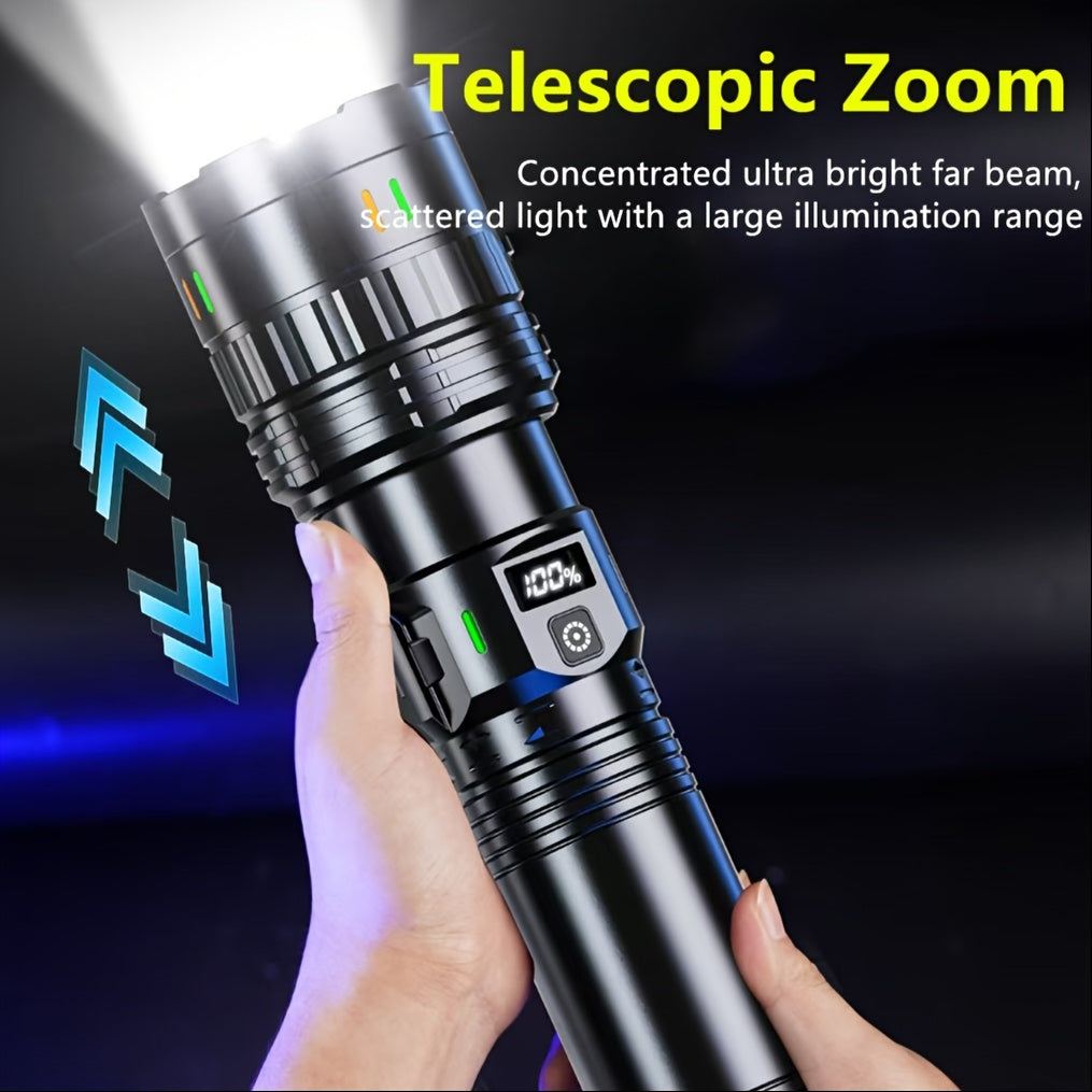 LED Flashlight 1000 Lumens with 4 Modes 200m Range Rechargeable 3600mAh USB-C