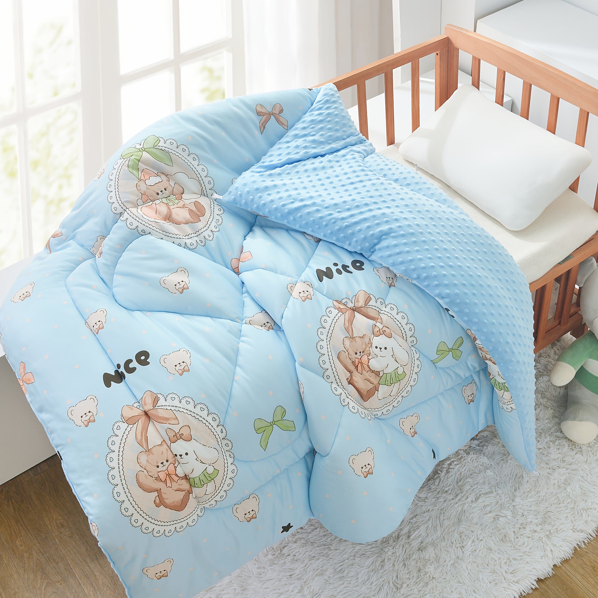 Kids Beanie for Girls and Boys Soft Knit Animal and Plant Pattern Blue and White