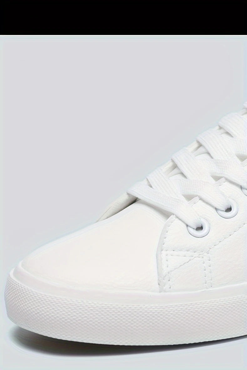Unisex Low Top Sneakers Solid Color Lace-Up Faux Leather PVC Sole All-Season Walking Hiking Sports