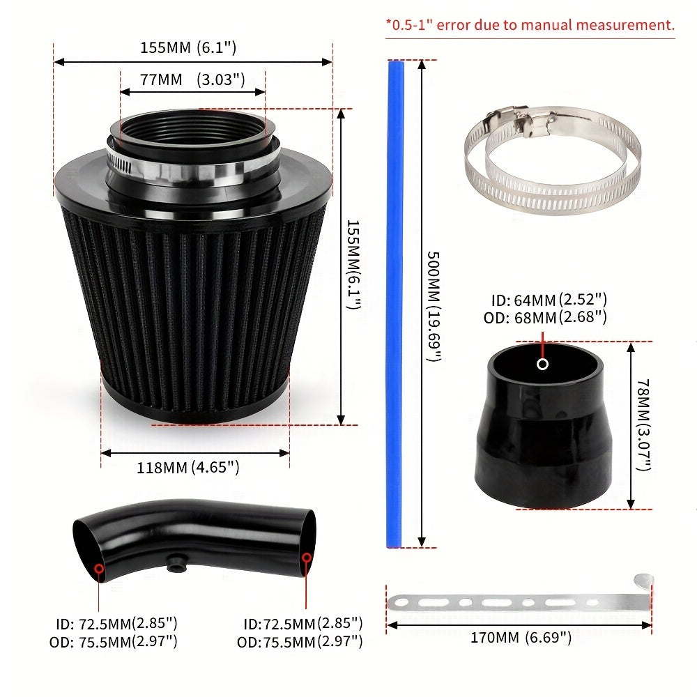 Universal Aluminum Alloy Car Air Filter 76mm Cold Air Intake Filter Kit