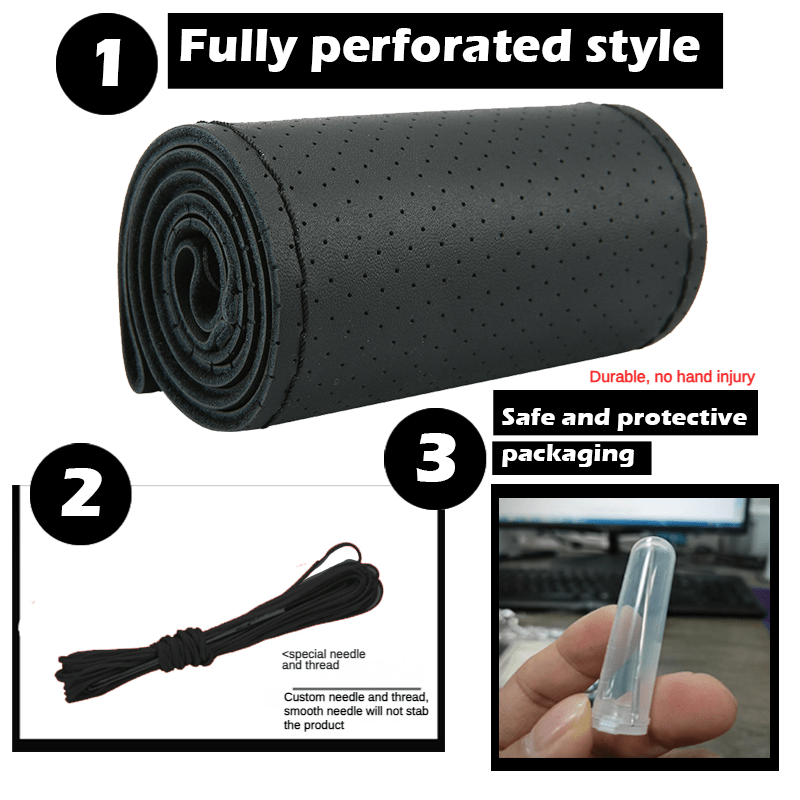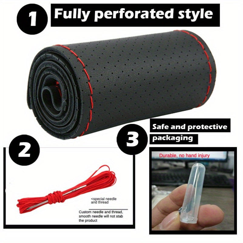 Universal PU Leather Car Steering Wheel Cover Breathable Non-Slip 38cm