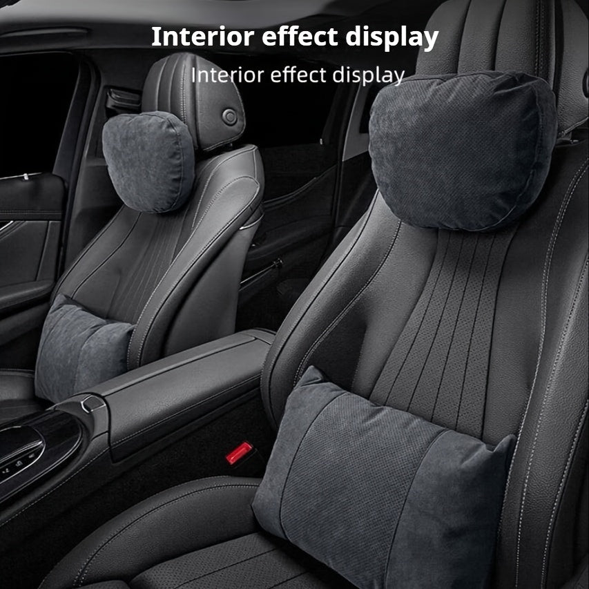 Universal Suede Headrest and Lumbar Support Combo Breathable Ergonomic Pillow Set