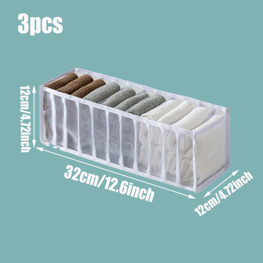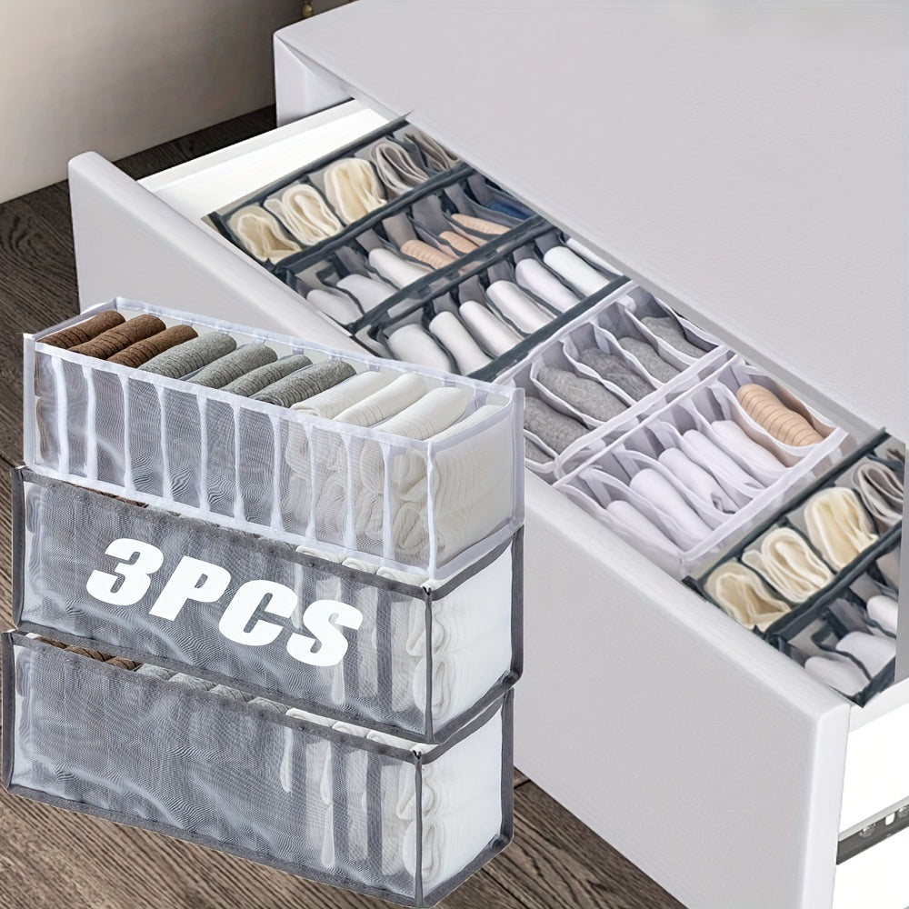 3-Piece Closet Organizer Set with 11 Grid Dividers and Storage Boxes for Clothes Socks and Scarves