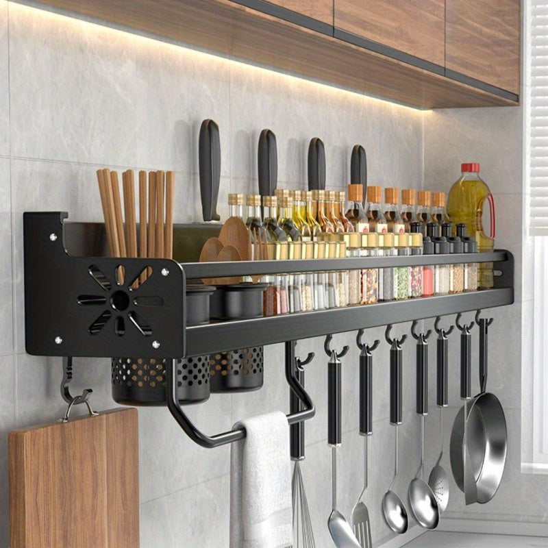 Wall-Mounted Kitchen Storage Rack for Spices Knife and Chopstick Holder