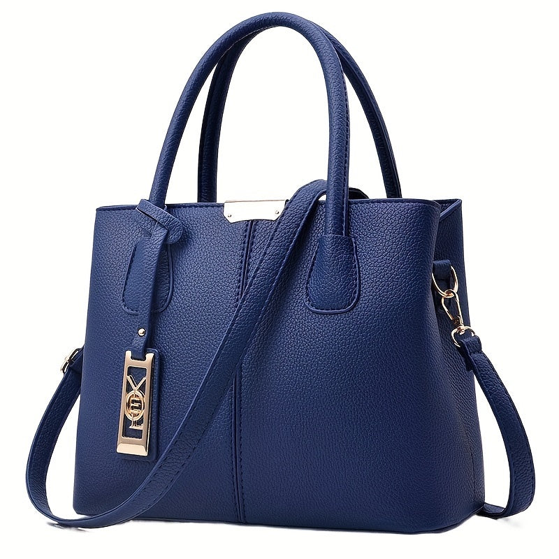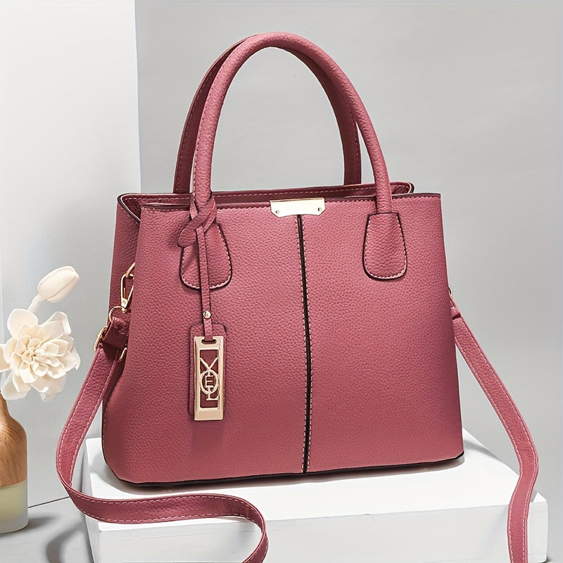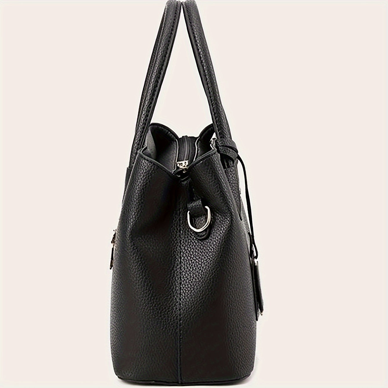 White Synthetic Leather Tote Bag with Tag Detail Large Capacity Multi-Layer Design