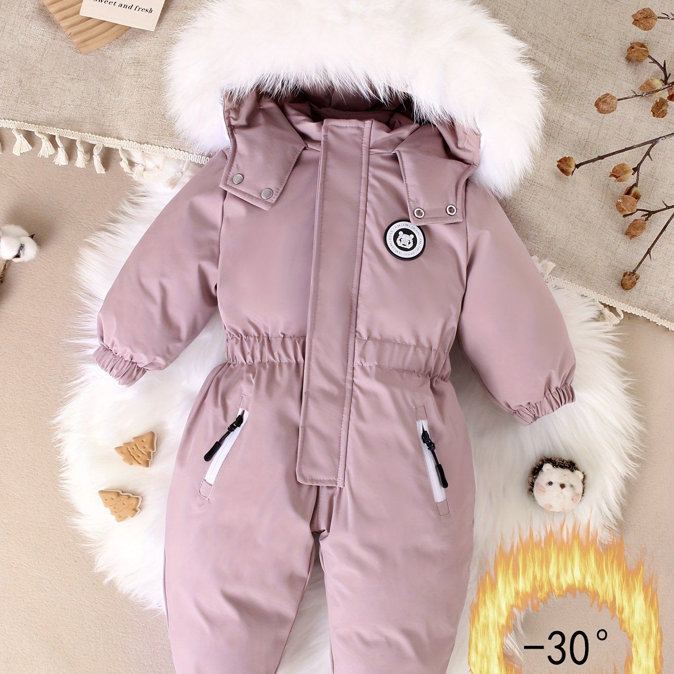 Baby Winter Snowsuit for Ages 1-5 with Faux Fur Hood and Zipper Closure