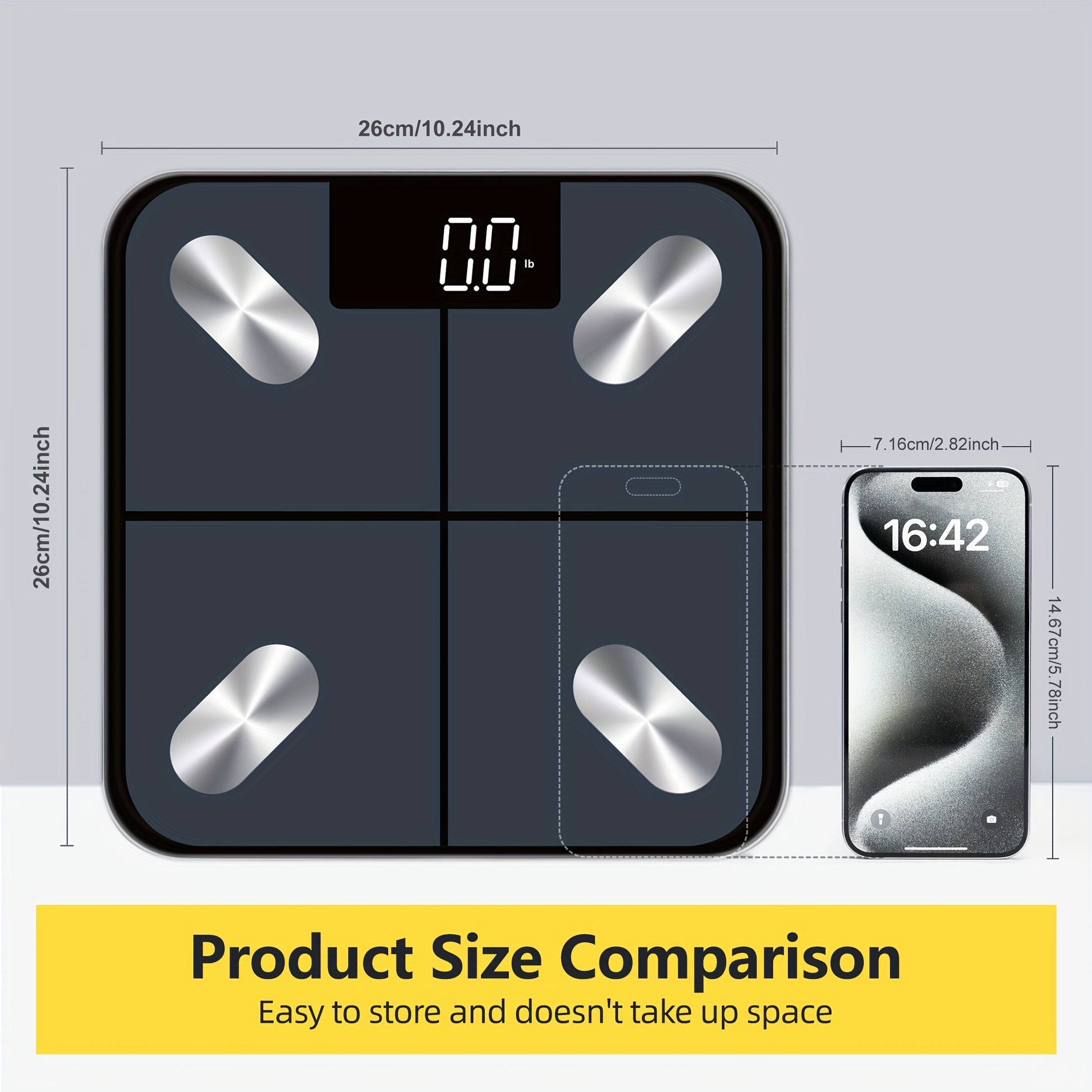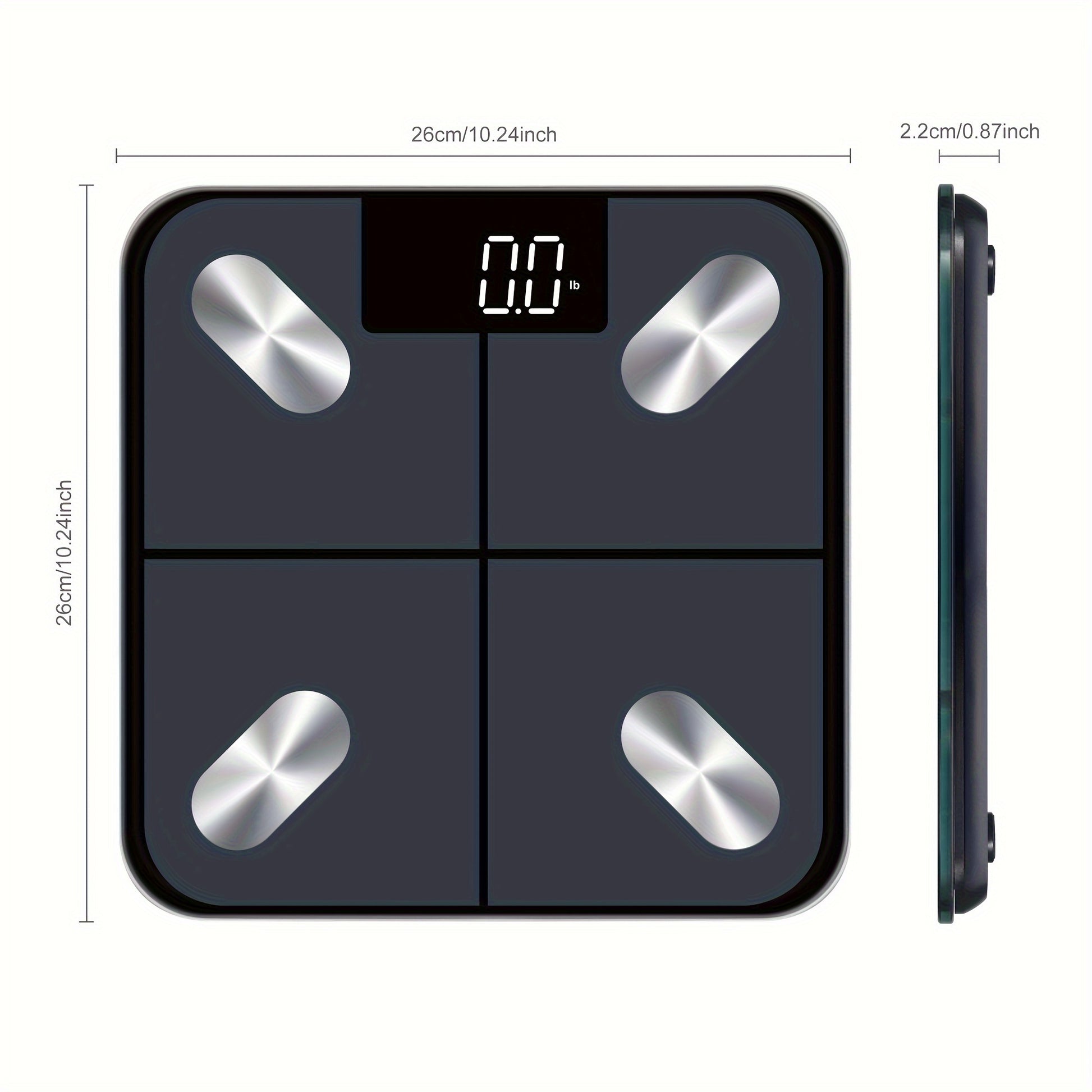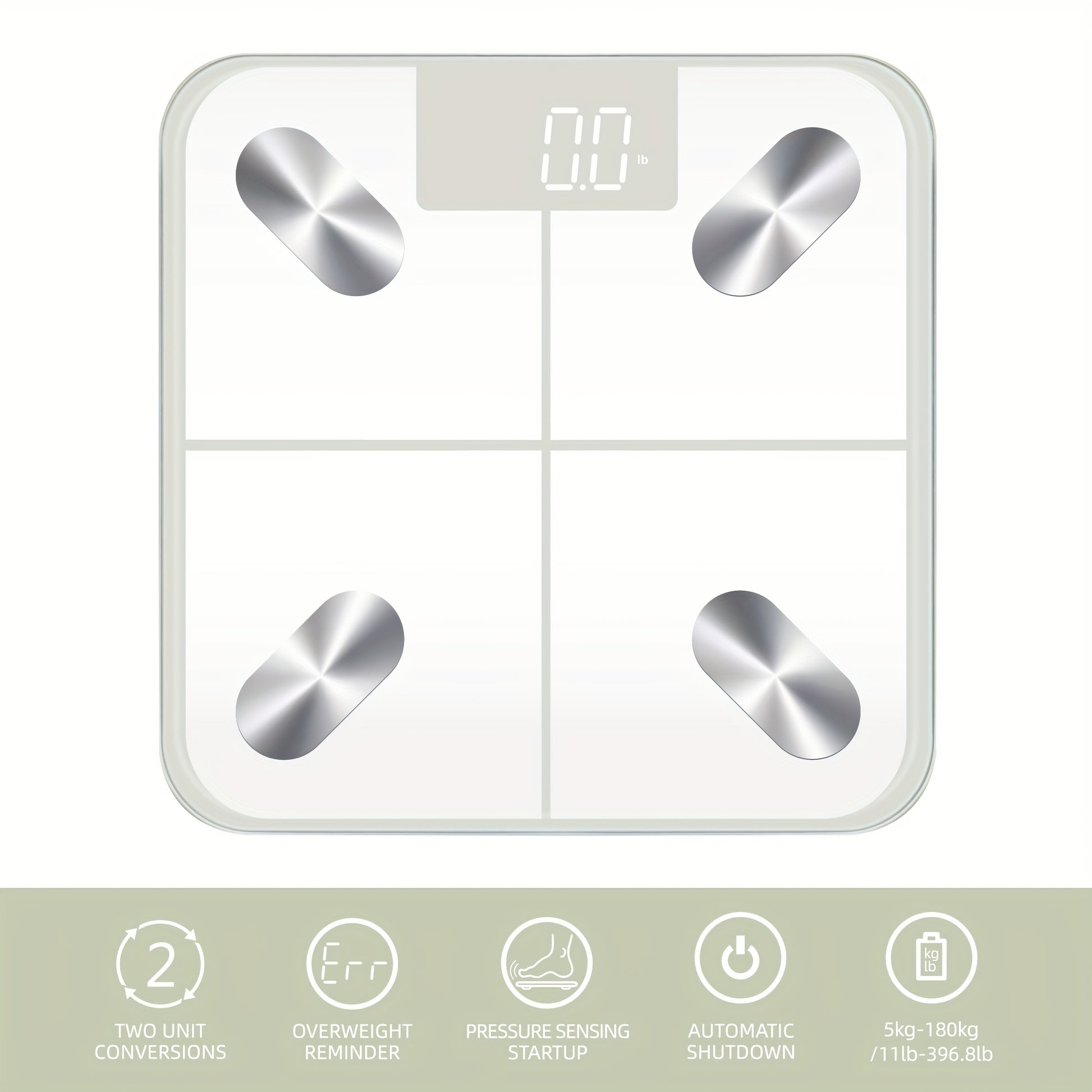 Wireless smart bathroom scale with LED display syncs with fitness apps and is battery powered