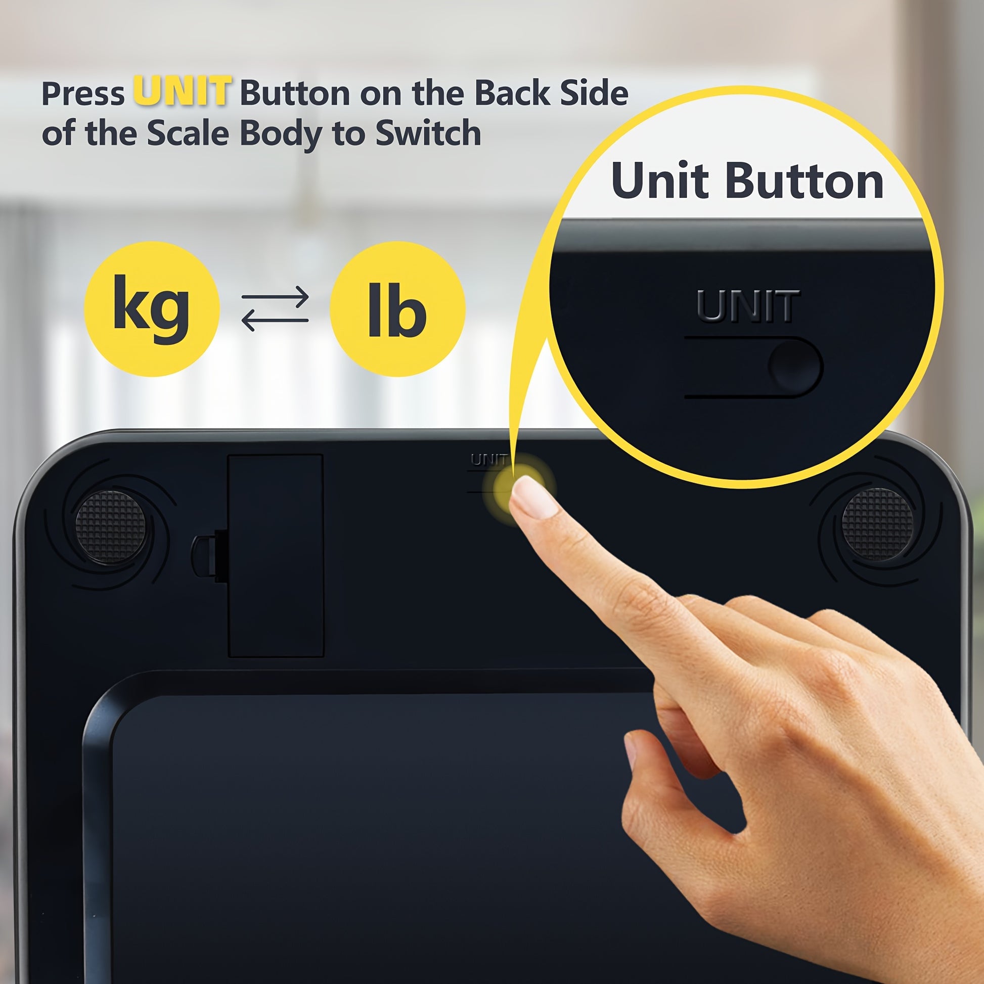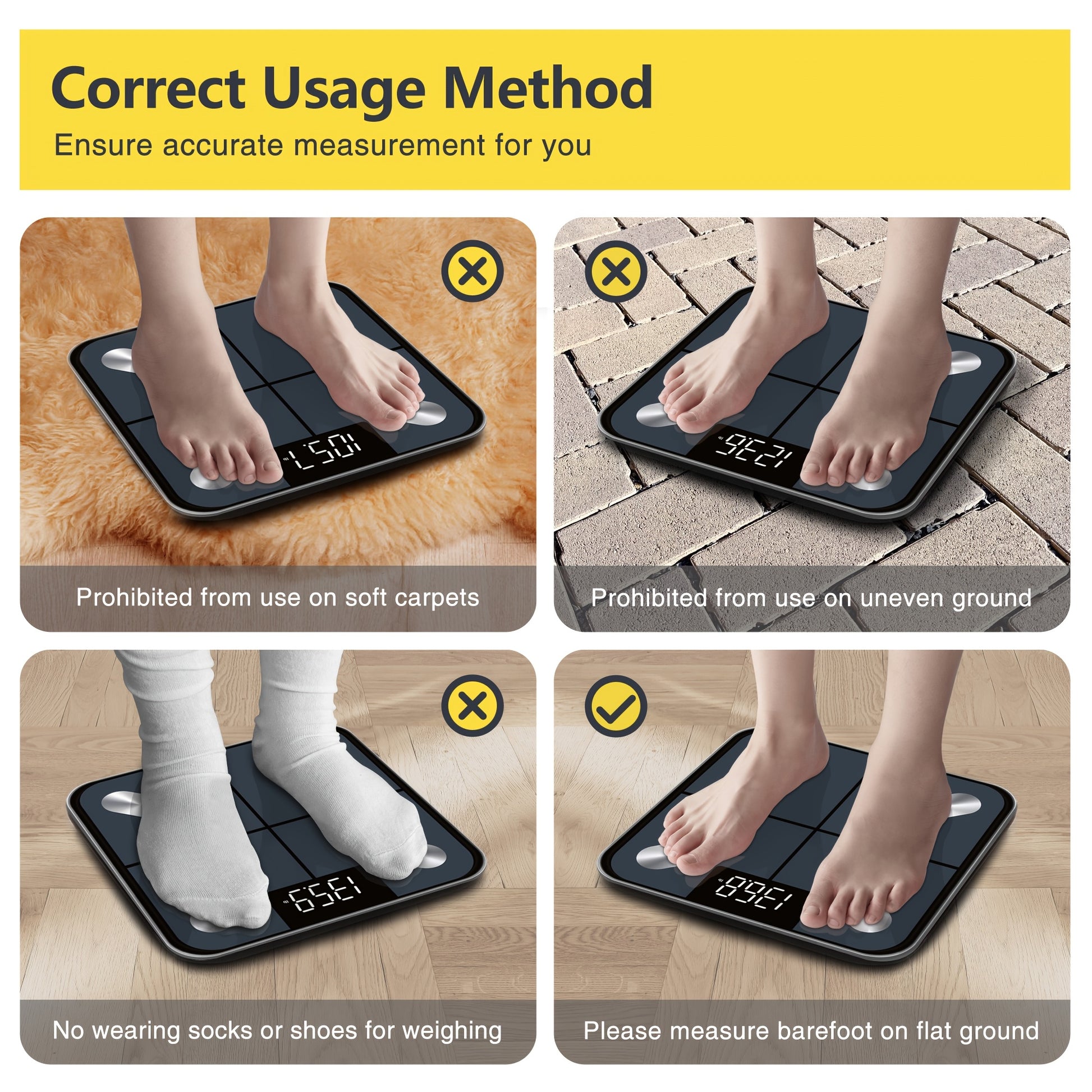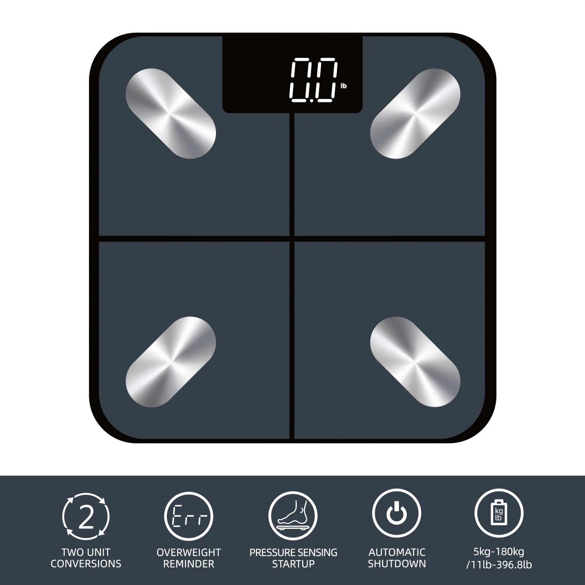 Wireless smart bathroom scale with LED display syncs with fitness apps and is battery powered