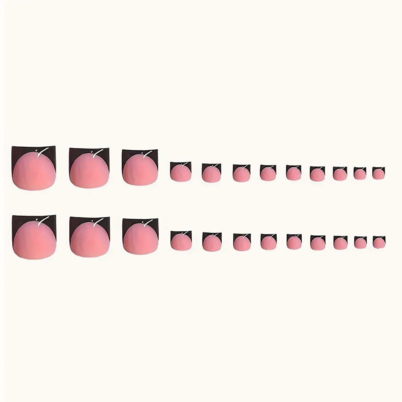 Women Black French Tip Press-On Toenails Kit Medium Square Fake Nails