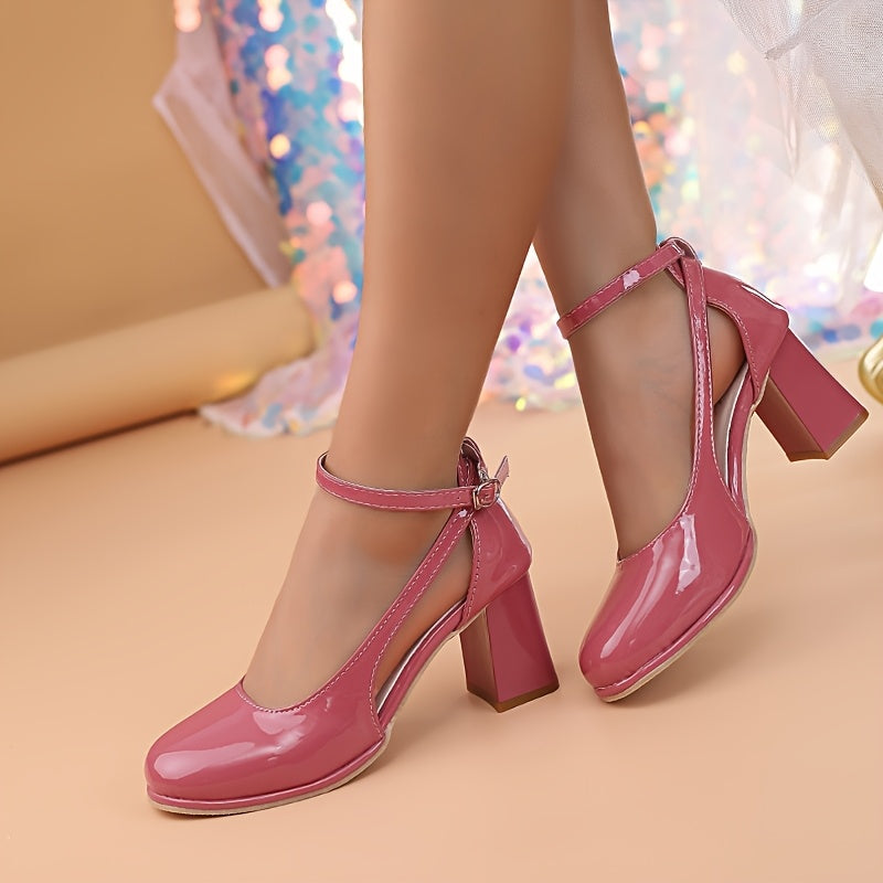 Women Chunky Heel High Heels Square Toe Low Top Shoes Shallow Mouth Rubber