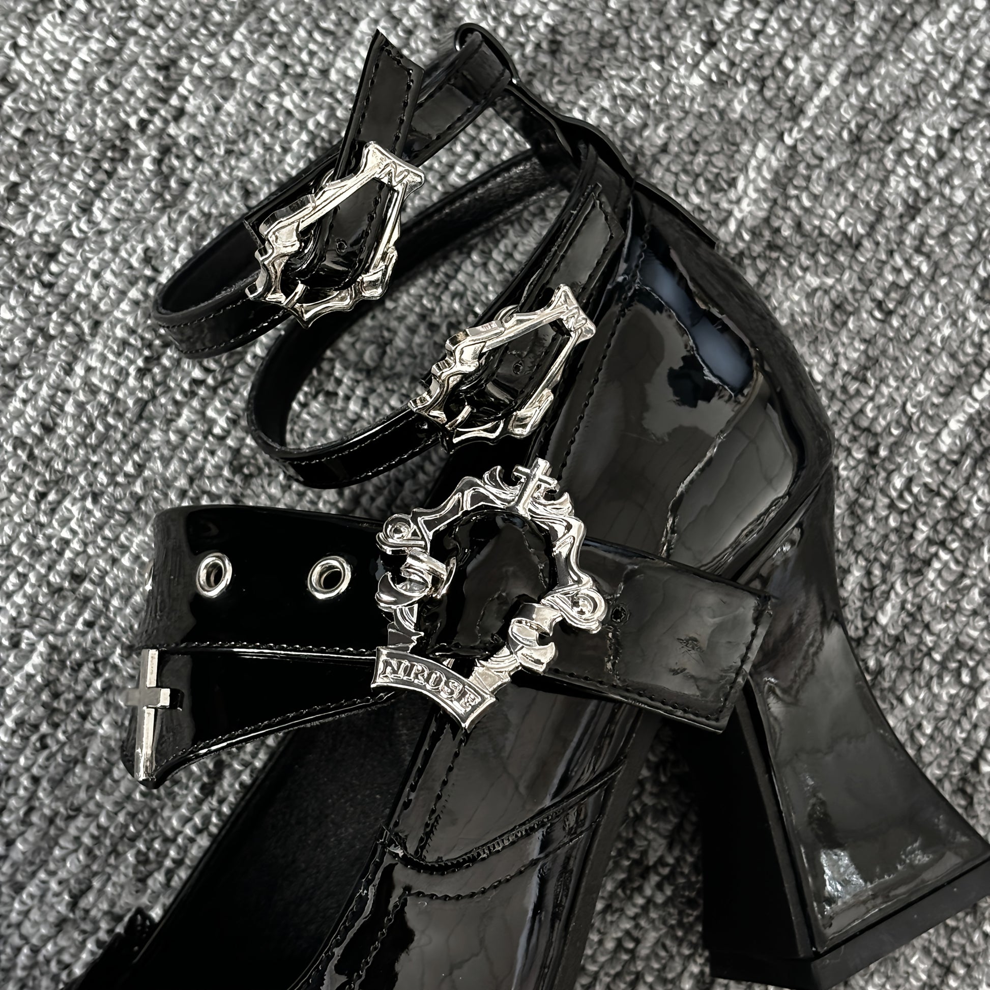 Women Gothic Pointed High Heeled Shoes Slim Heel Punk Single-Layer Shoes