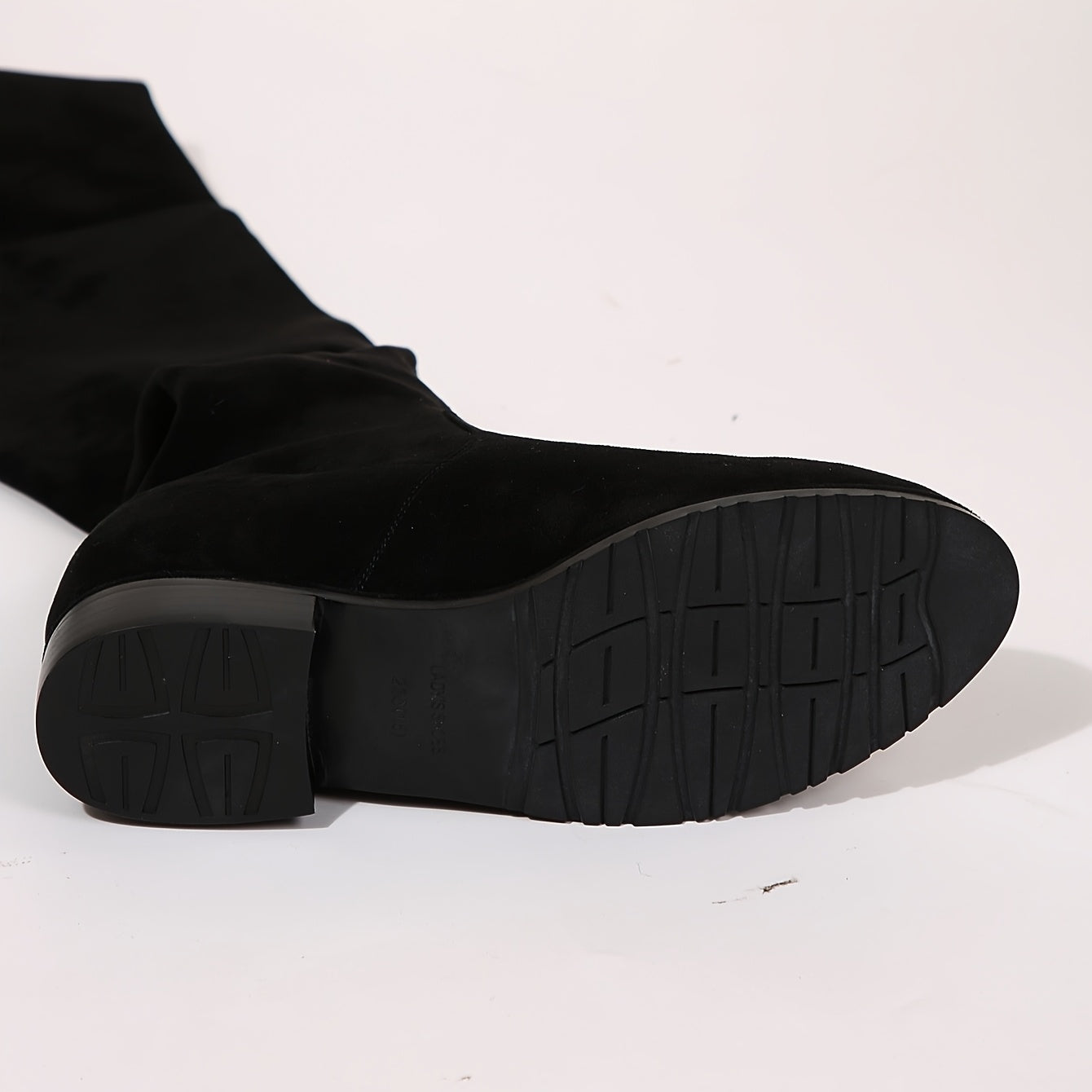 Women Over-the-Knee Boots Knit Stretchy Lace-Up Block Heel