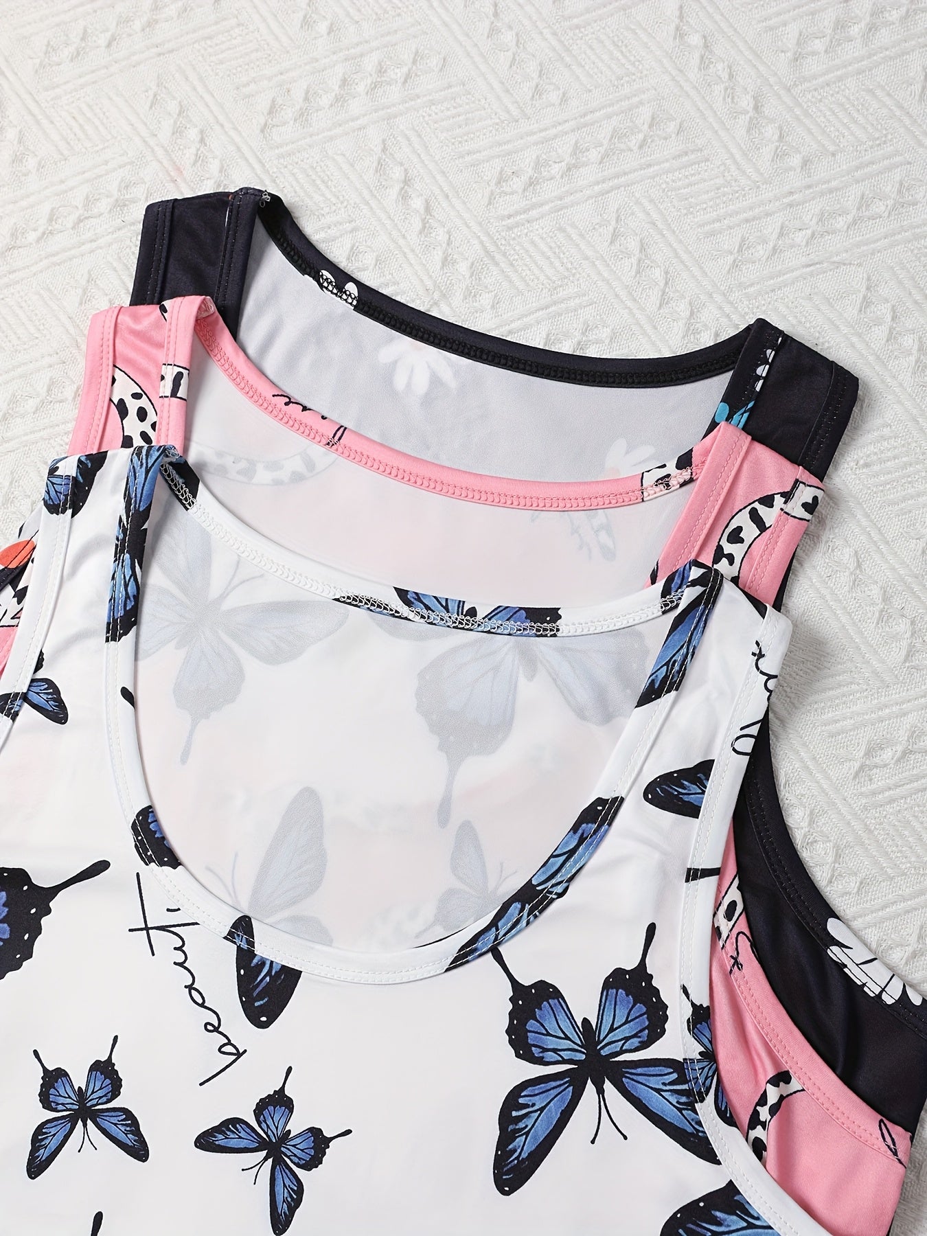 Women Plus Size Pajamas Set with Cartoon Love and Butterfly Patterns Nightgowns
