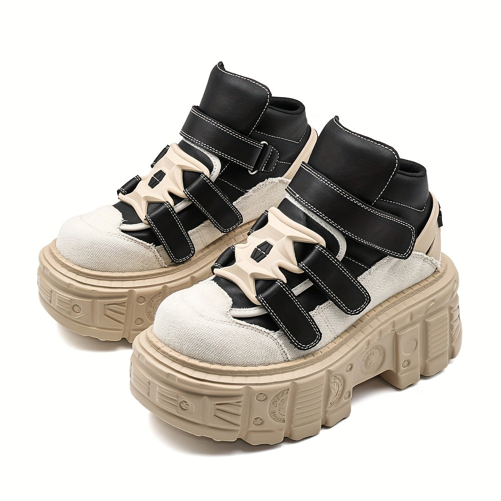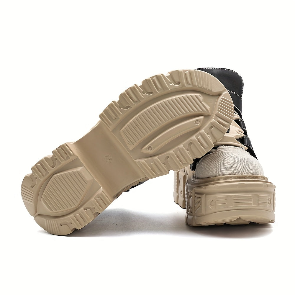 Women Punk Style High-Top Chunky Platform Ankle Boots Black White Accents