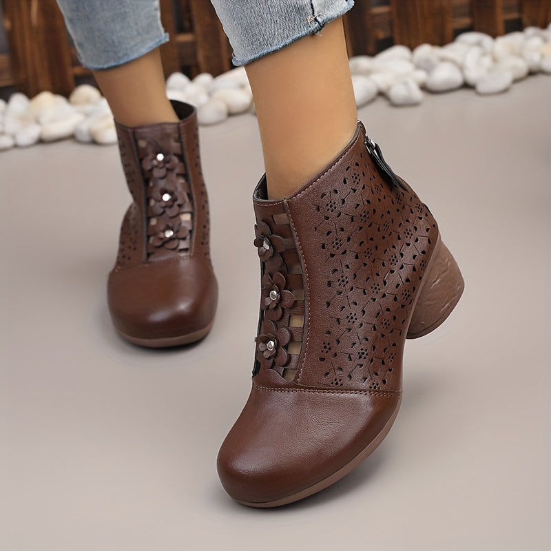 Women Retro Ankle Boots Faux Cover Chunky Heel Zipper Mid-Heel
