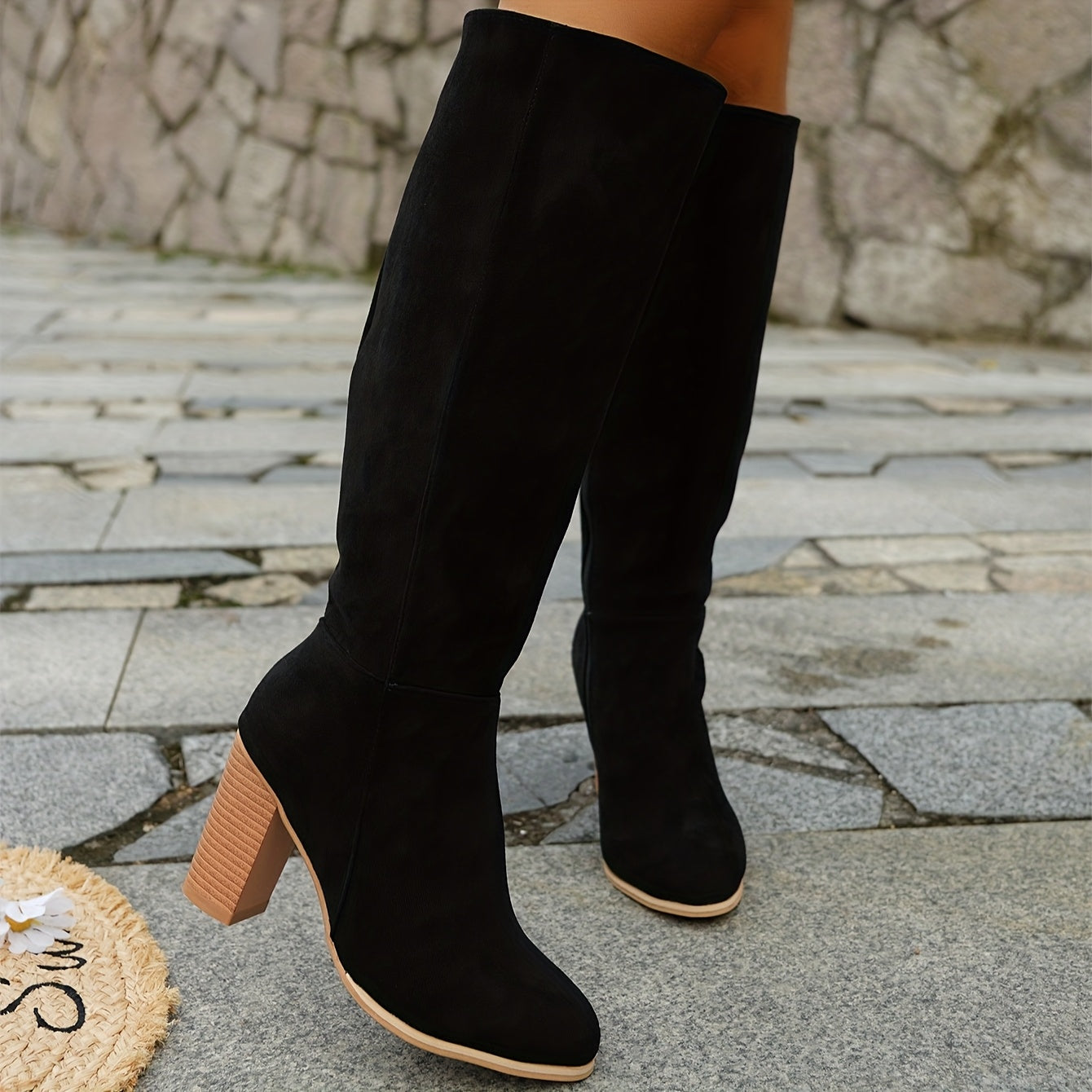 Women's Ankle Boots Faux Leather Round Toe Chunky Heel Over-the-Knee Boots