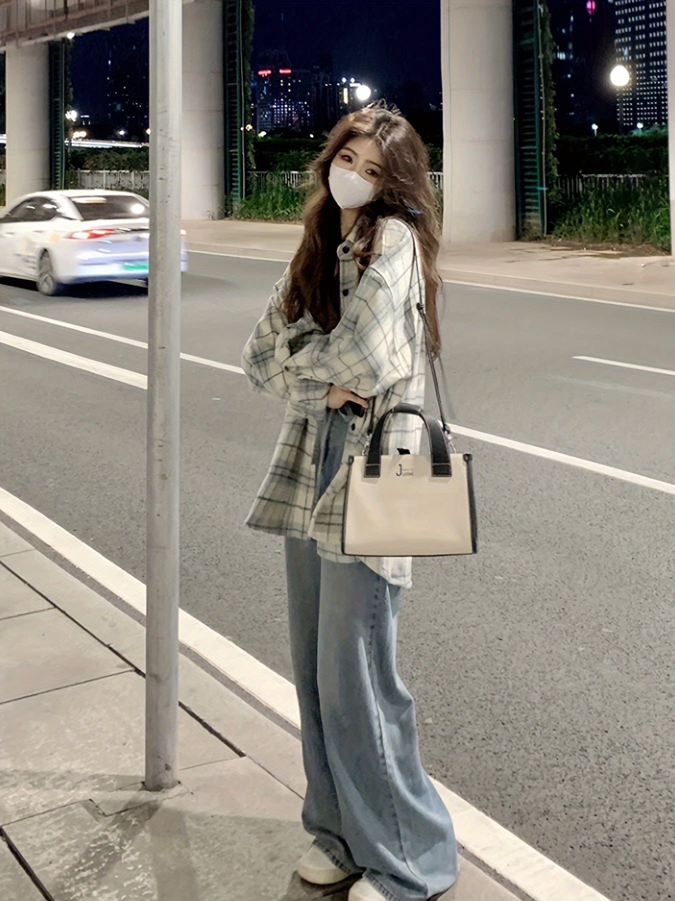 Women's Plaid Long Sleeve Shirt Fall Casual Woven Polyester