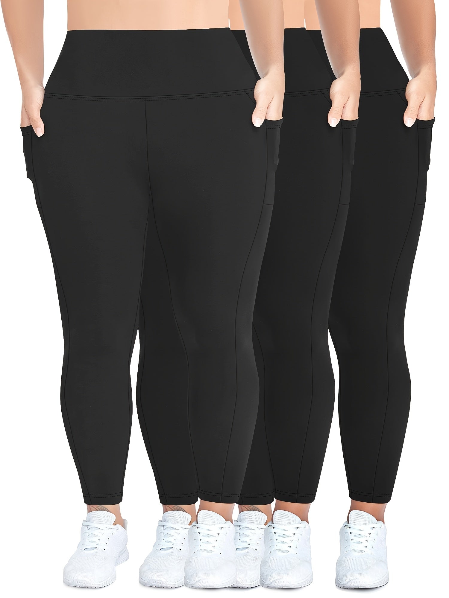Women's Black High-Waisted Plus Size Yoga Leggings 3 Pack with Pockets