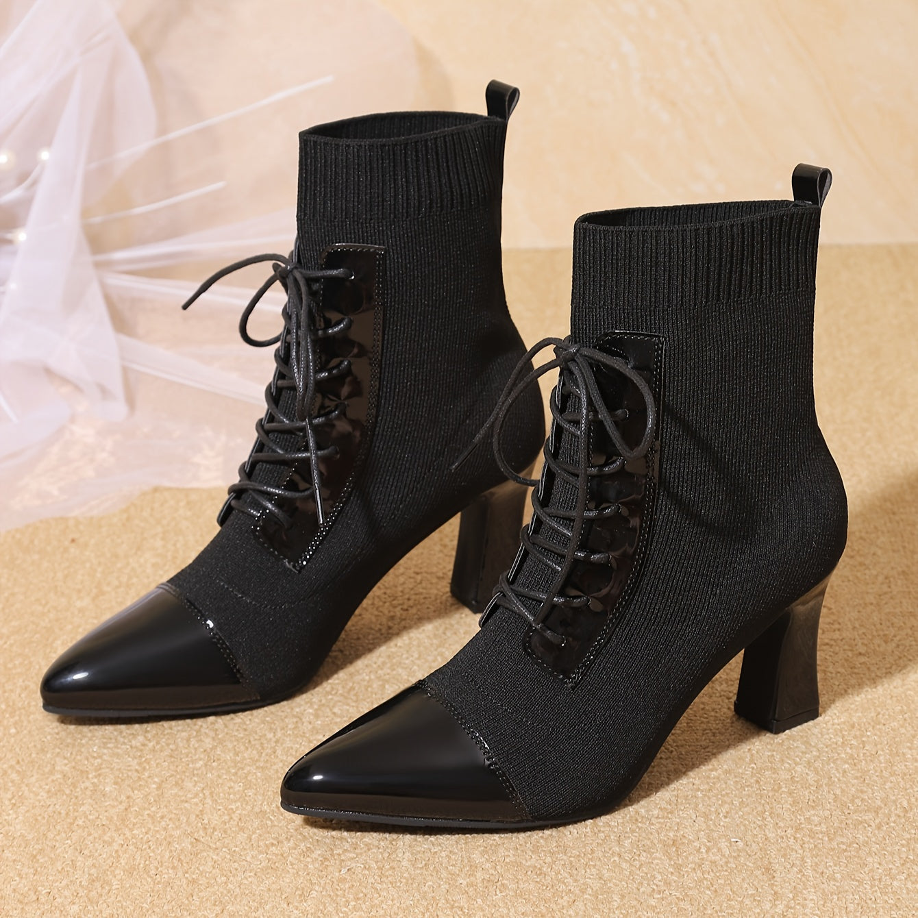 Women's Black Synthetic Leather High Heel Ankle Boots with Pointed Toe