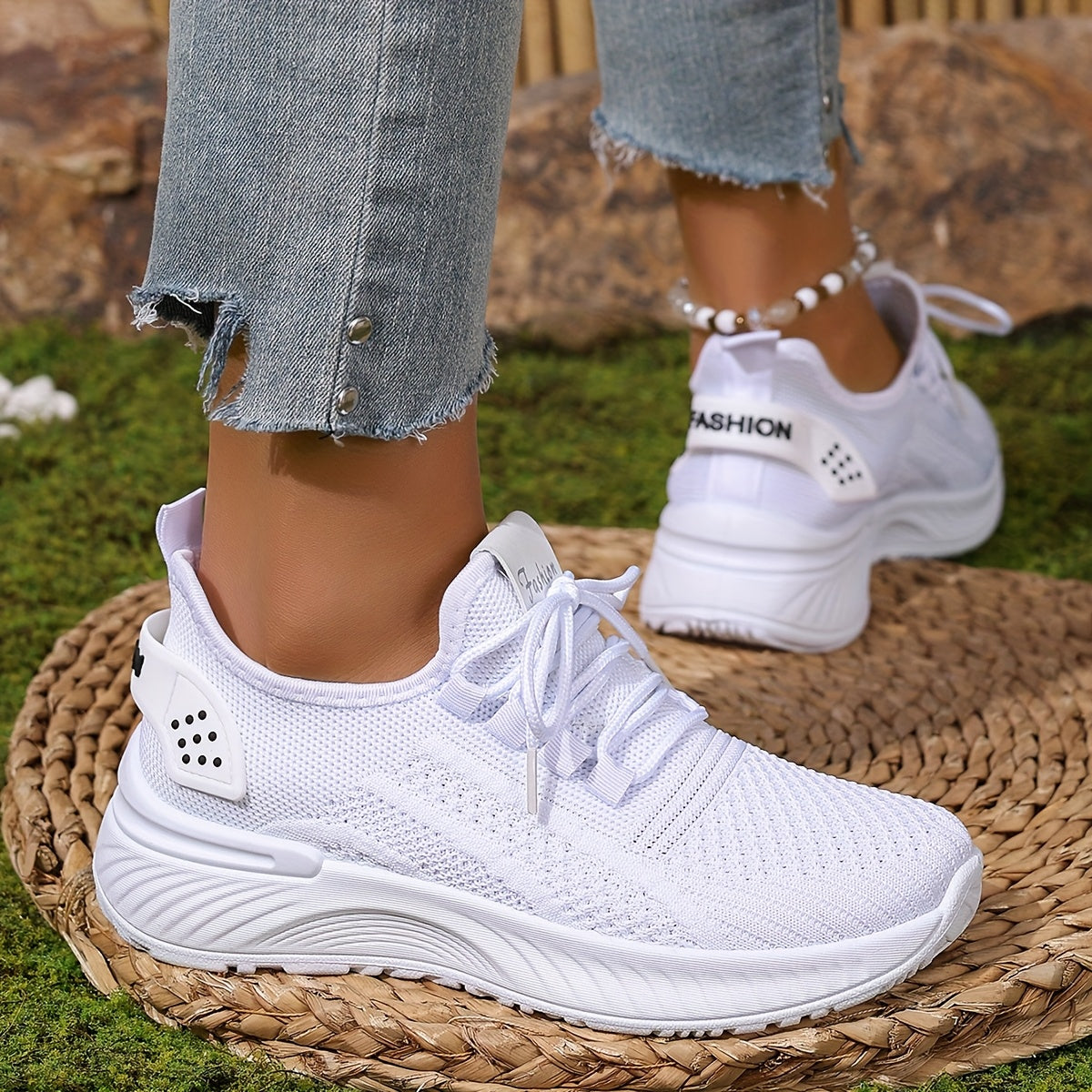 Women's Breathable Knit Sneakers Lightweight Casual Running Shoes Beige White Red