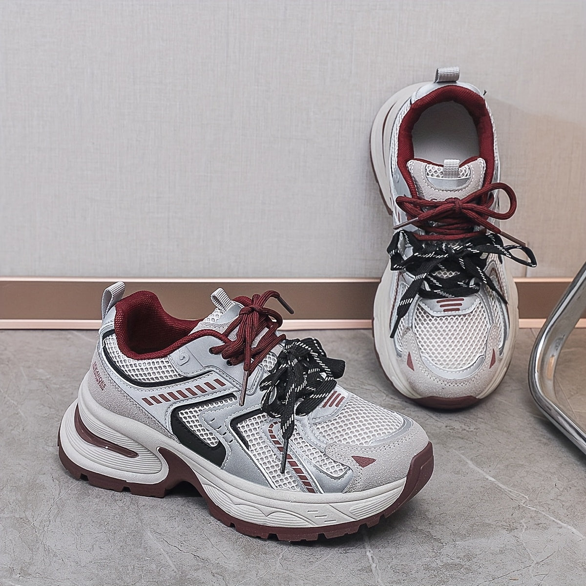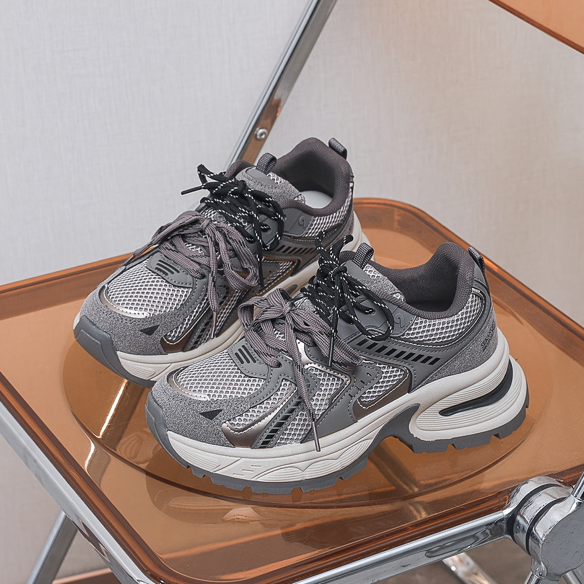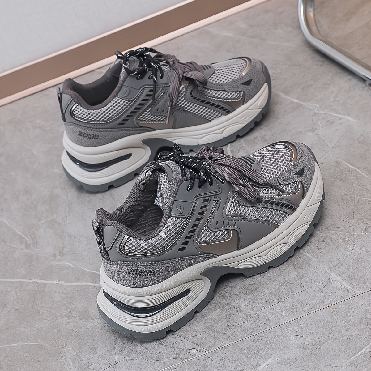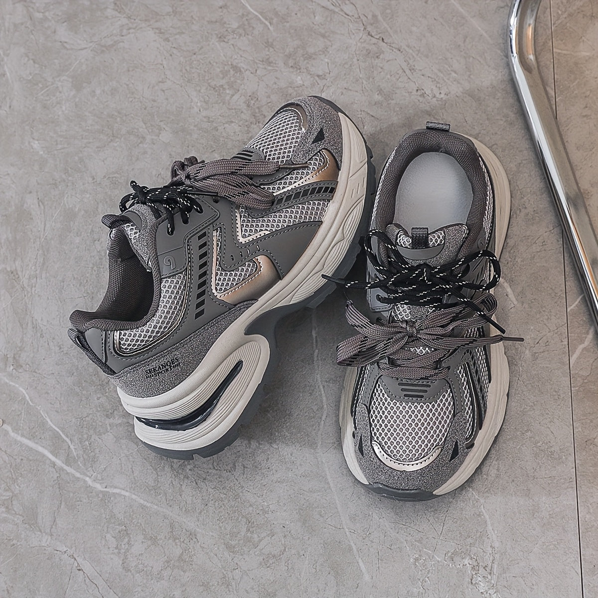 Women's Breathable Mesh PU Cover Low-Top Sneakers Casual Shoes Grey Black