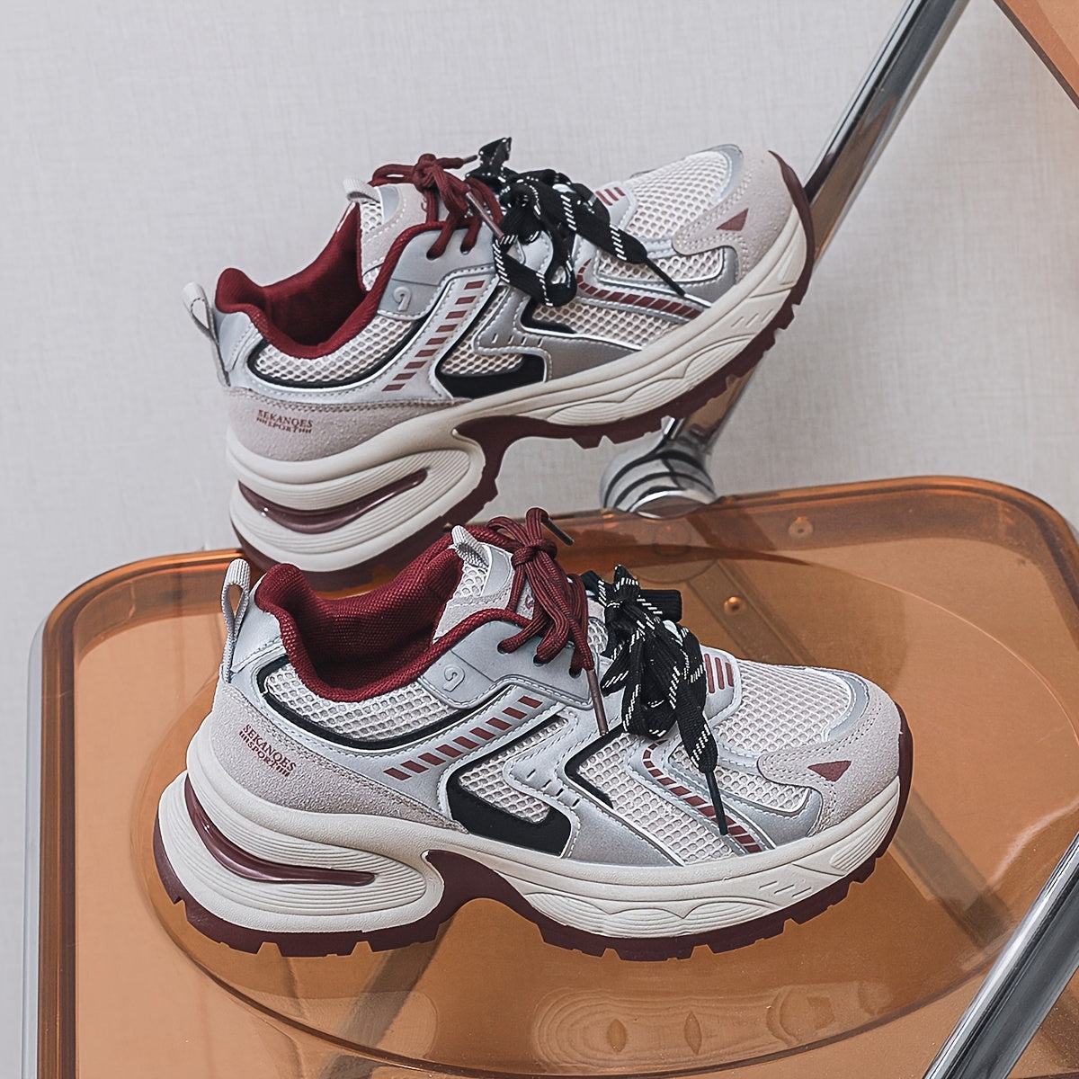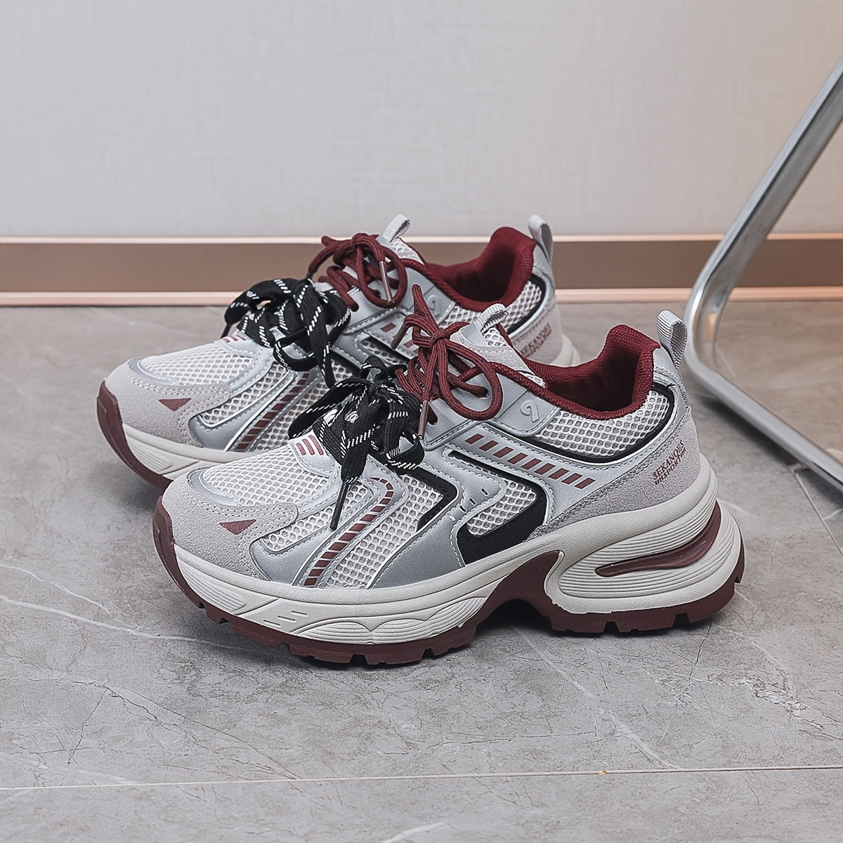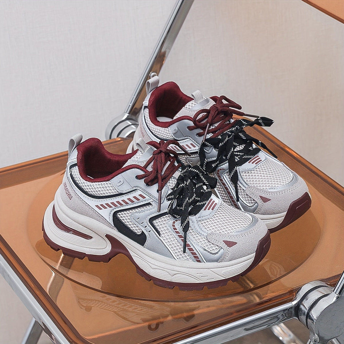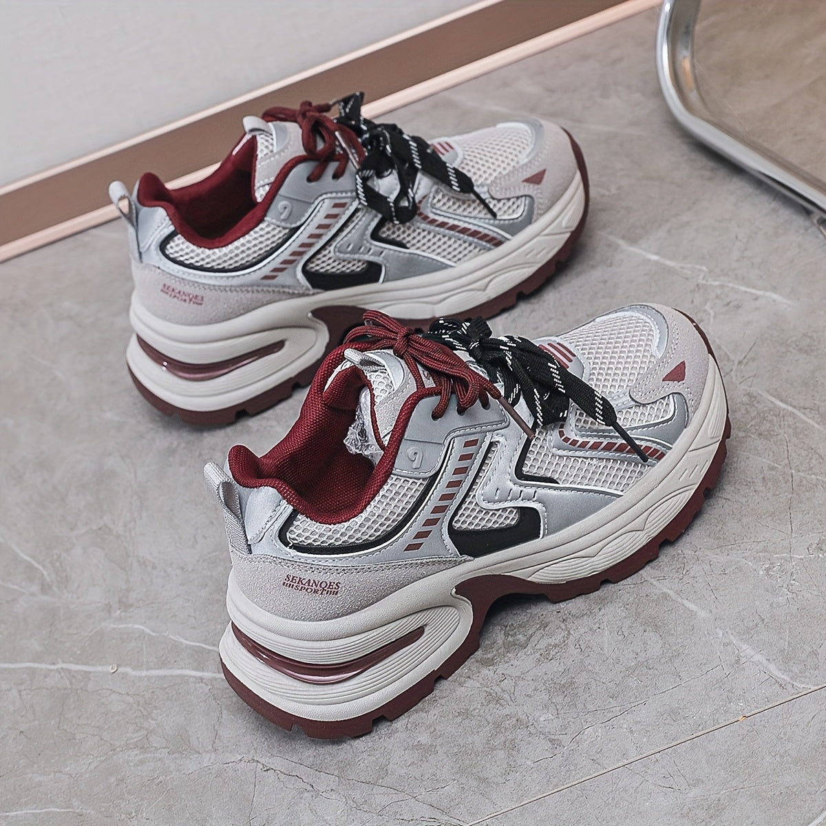 Women's Breathable Mesh PU Cover Low-Top Sneakers Casual Shoes Grey Black