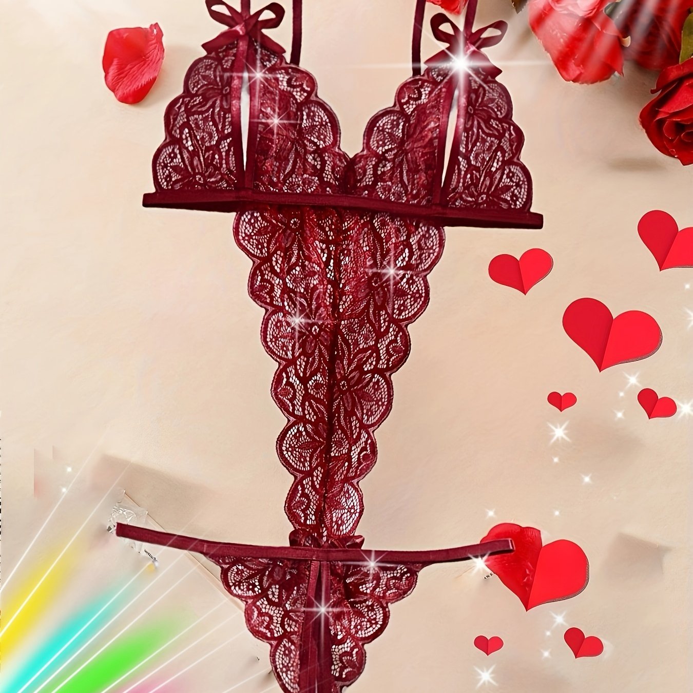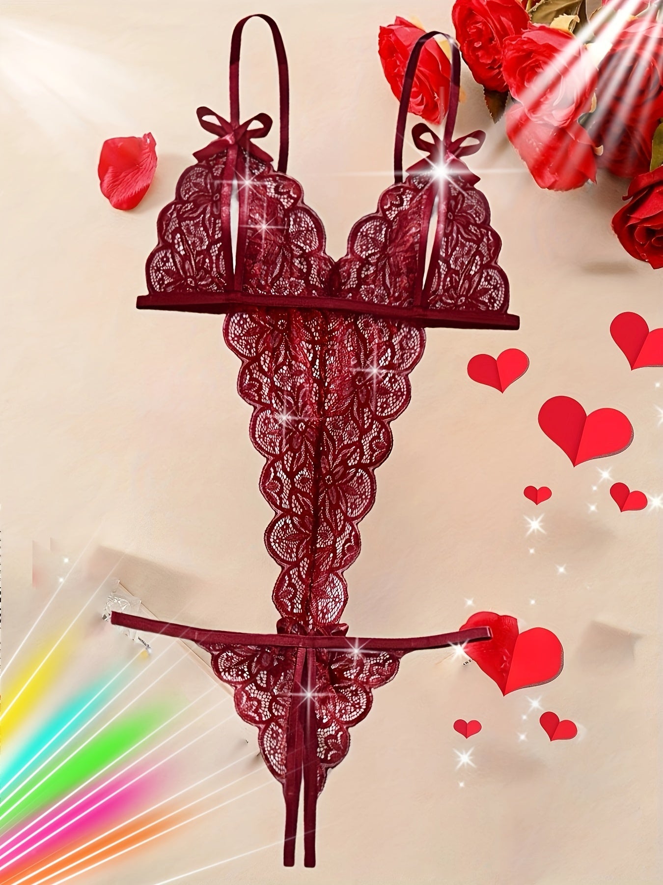 Women's Burgundy Floral Lace Teddy Bodysuit with Adjustable Straps
