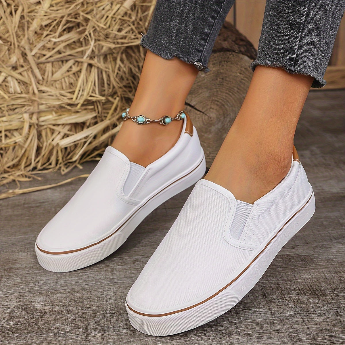 Women's Casual Leather Loafers White Flat Shoes Walking Sneakers