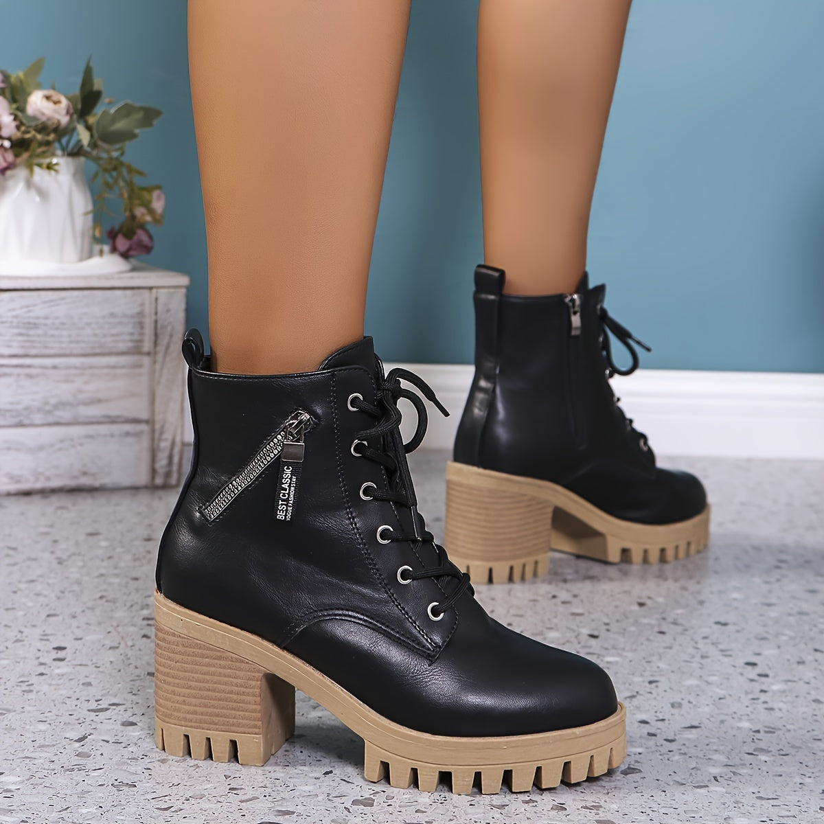 Women's Chunky Platform Ankle Boots Faux Cover Brown All-Season Heel