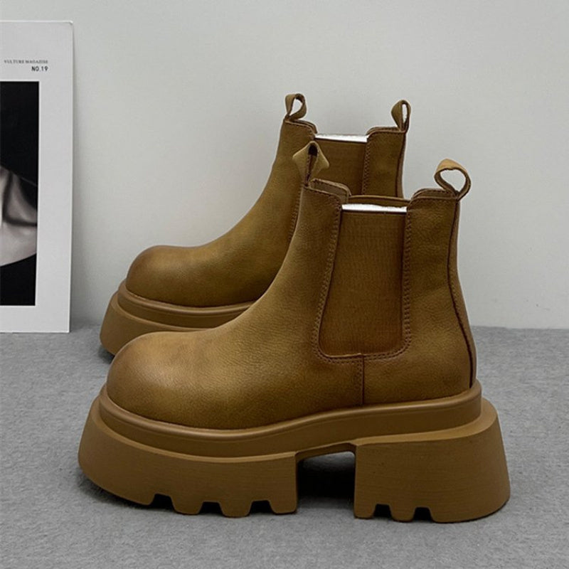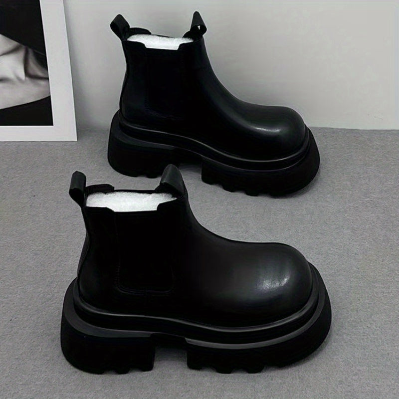 Women's Chunky Platform Boots Slip-On Thick Sole Non-Slip Rubber Brown Black Winter
