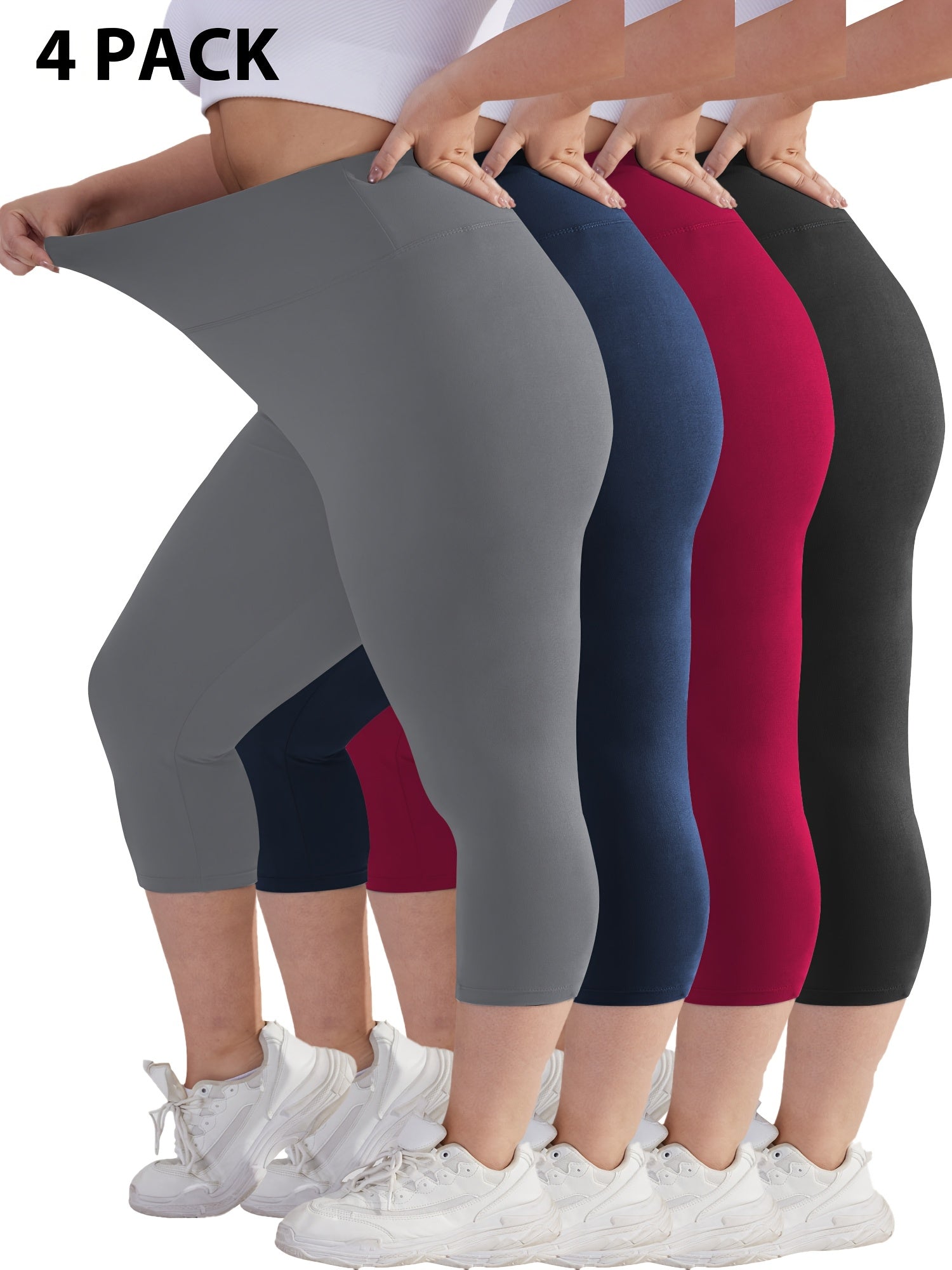 Women's Cropped Pants Black High Waist Tummy Control Skinny Leggings 4 Pack