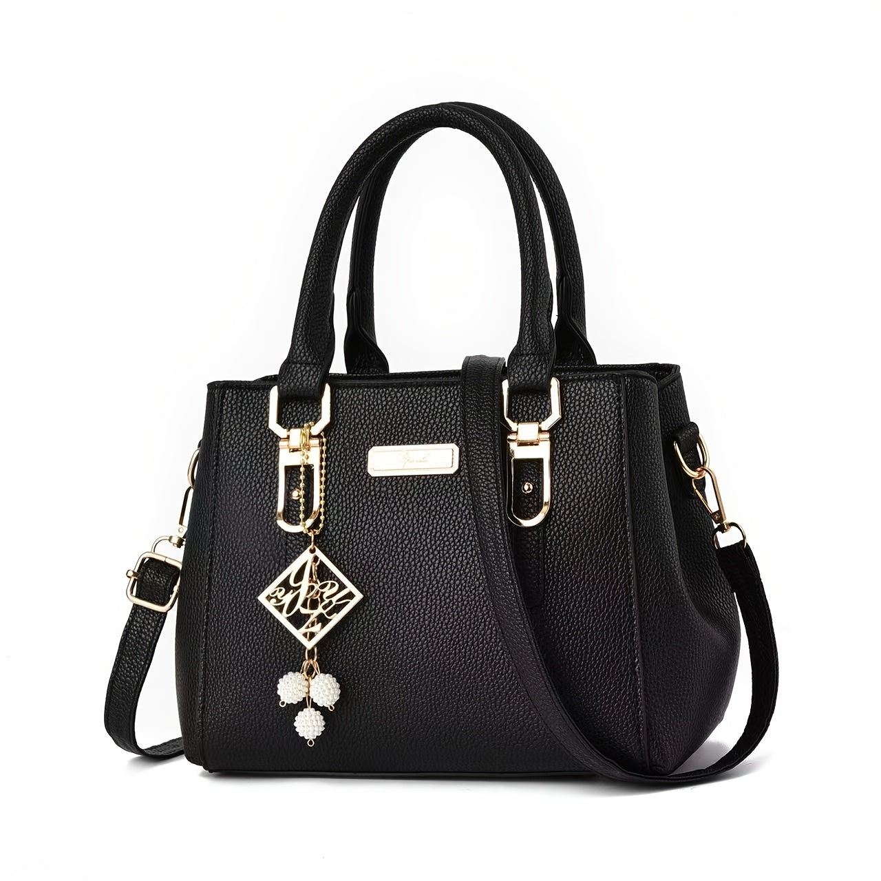 Women's Fashion Tote Bag with Large Capacity, Wristlet, Crossbody, Edge Painted in Black Pink Grey Red Apricot