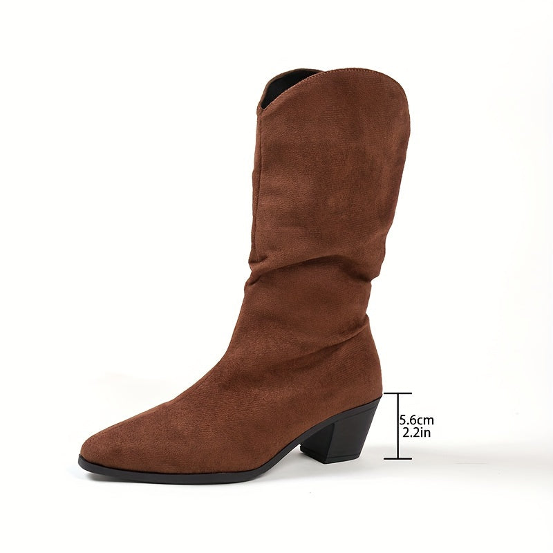 Women's Faux Fur Mid-Calf Boots Black Brown Square Toe Block Heel