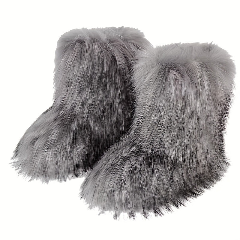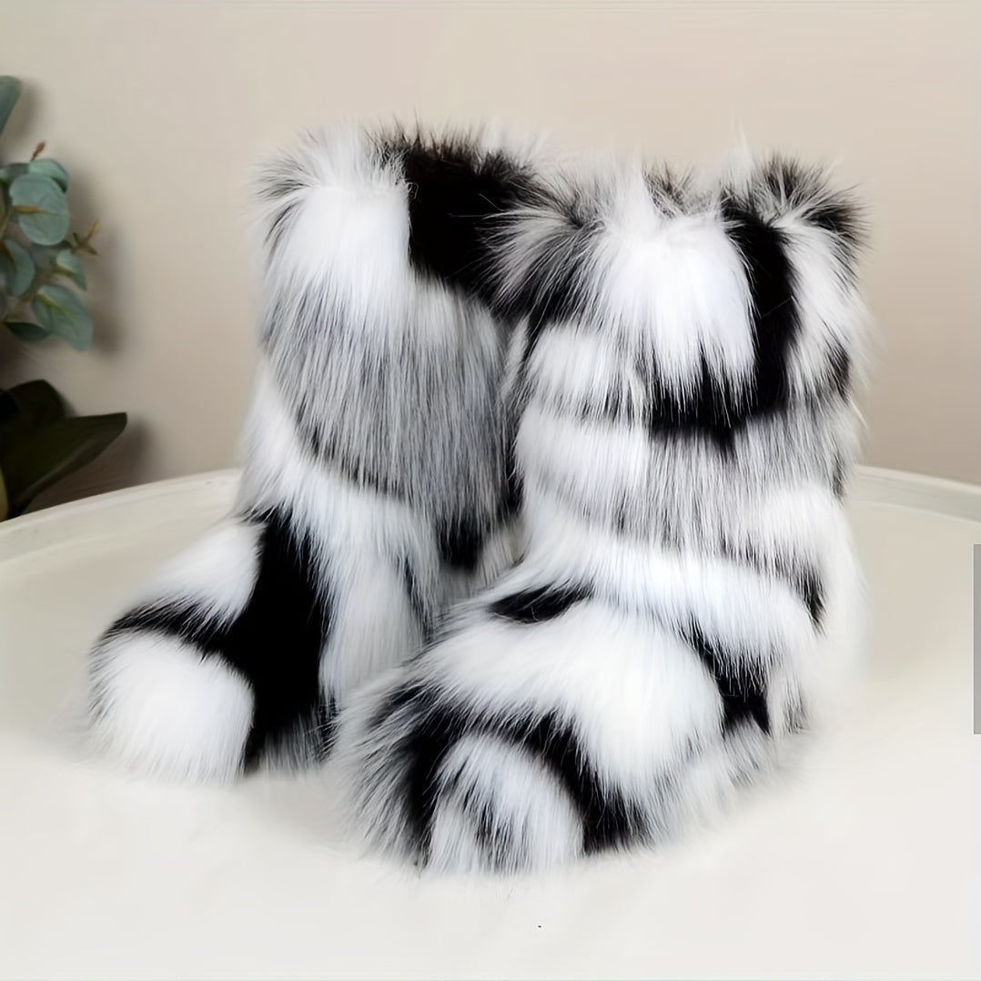 Women's Faux Fur Mid-Calf Boots Slip-On Flat Winter Casual