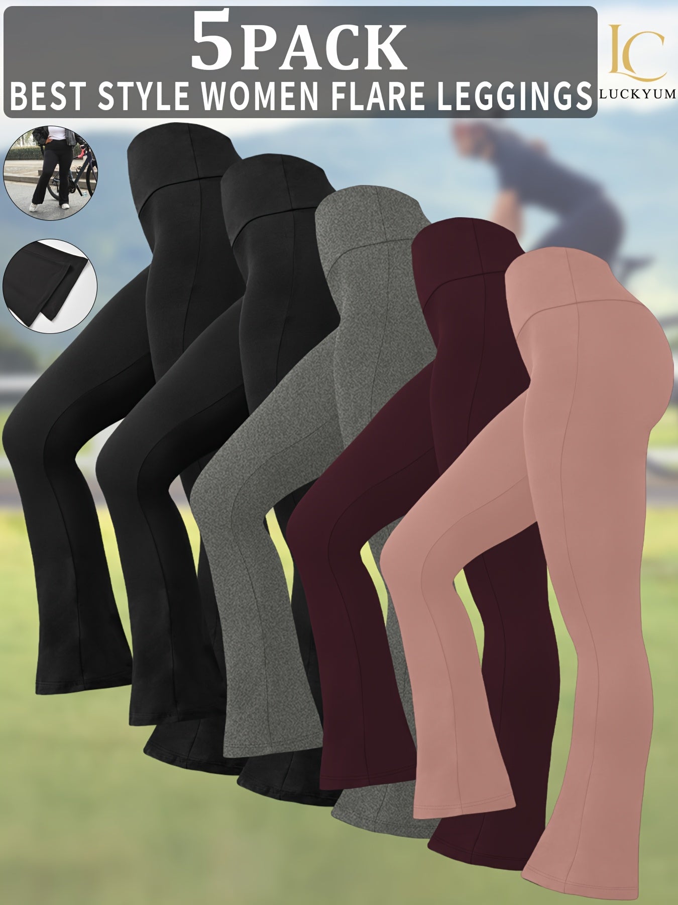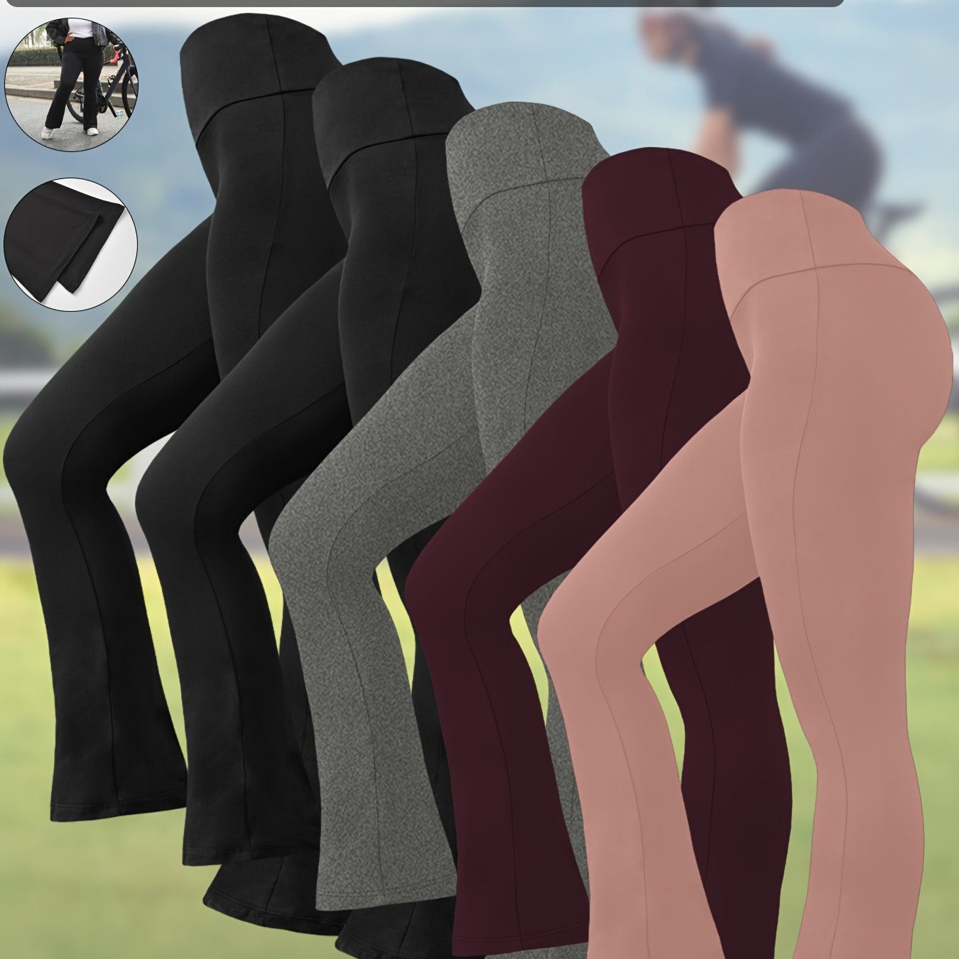Women's Flare Leggings High Waist Tummy Control Solid Color Knit Wide Leg Activewear