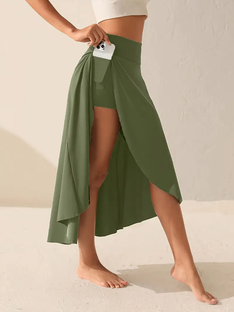 Women's Flared Skort with Pockets Stretchy Casual Solid Color All-Season