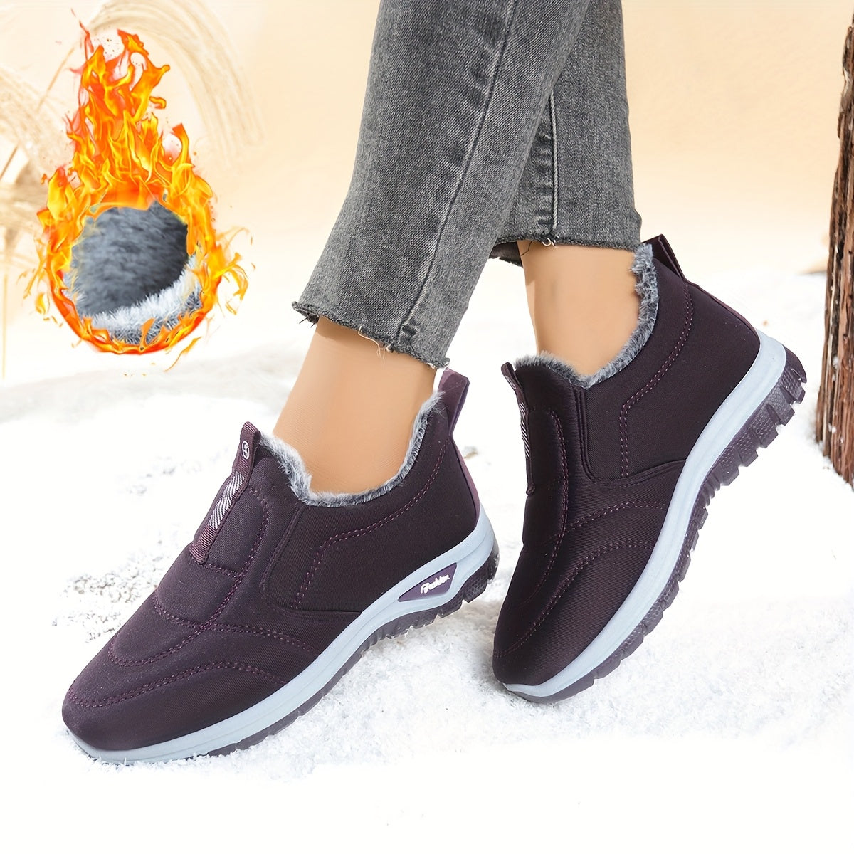 Women's Fleece-Lined Ankle Boots Black Red Slip-On Winter Outdoor