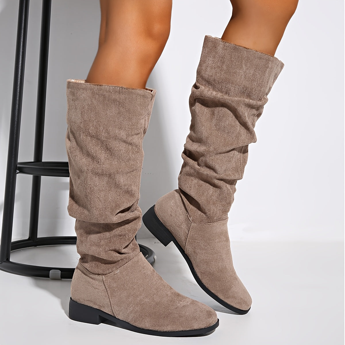 Women's Fleece-Lined Leather Knee-High Pointed Toe Western Cowboy Boots