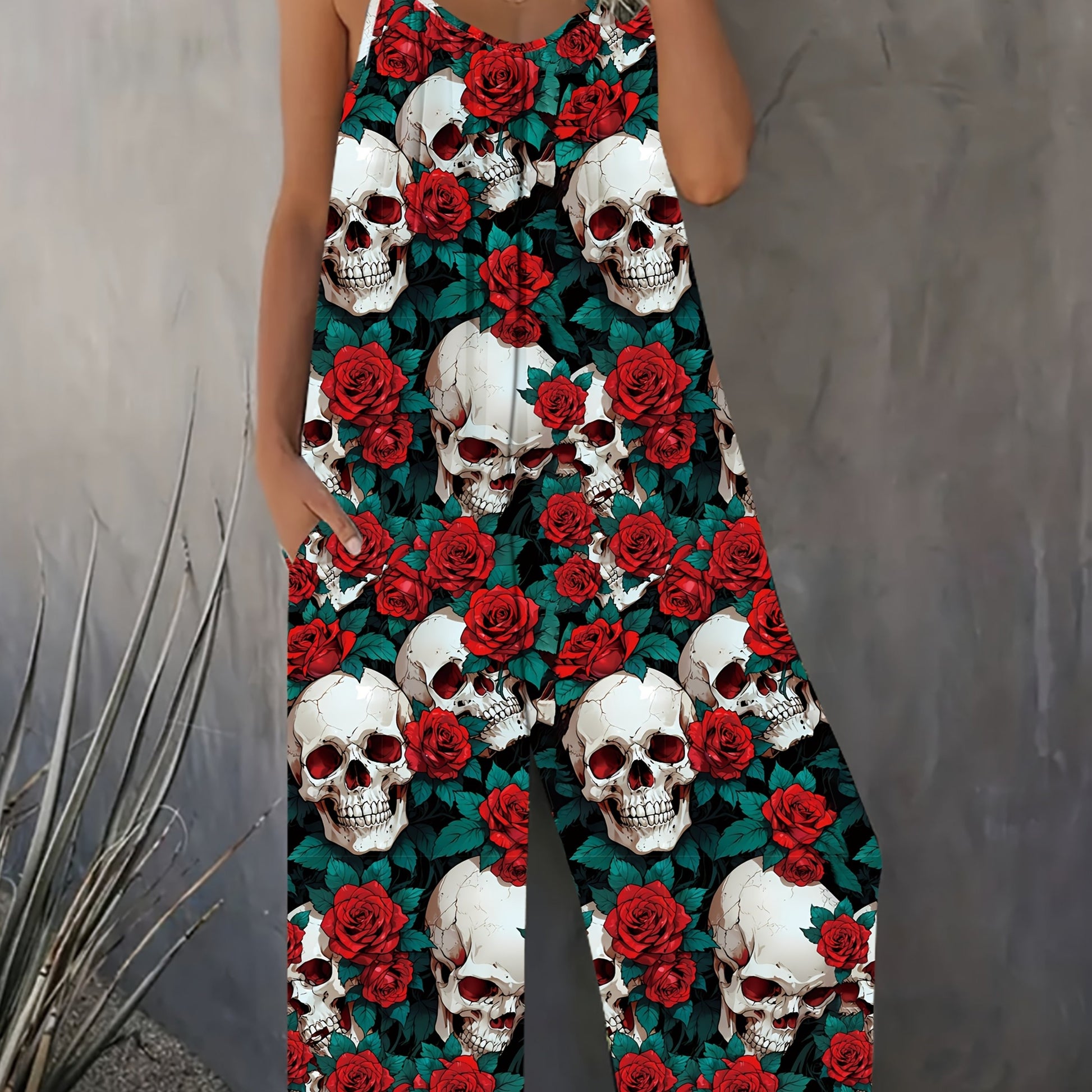 Women’s Floral Print Jumpsuit Polyester Spandex Crew Neck All Seasons