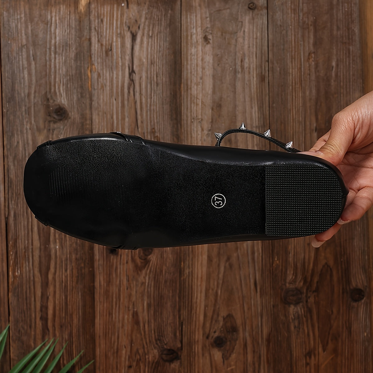 Women’s Gothic Flats with Metallic Buckle Straps Synthetic Round Toe Black All-Season Comfortable Shoes