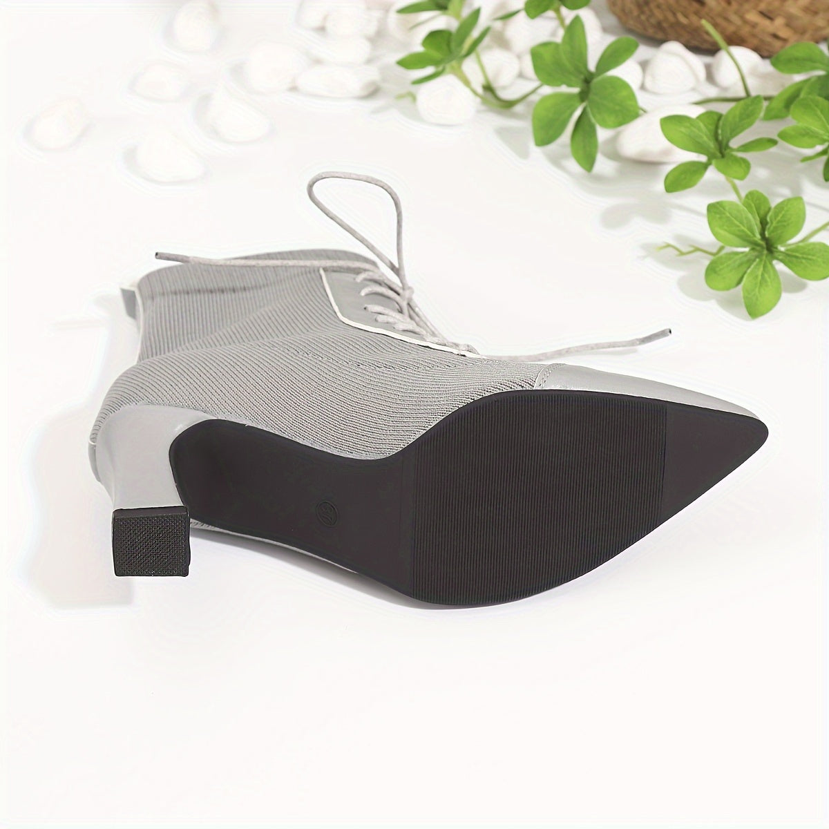 Women's Grey Ankle Boots with Pointed Toes and Chunky Heels