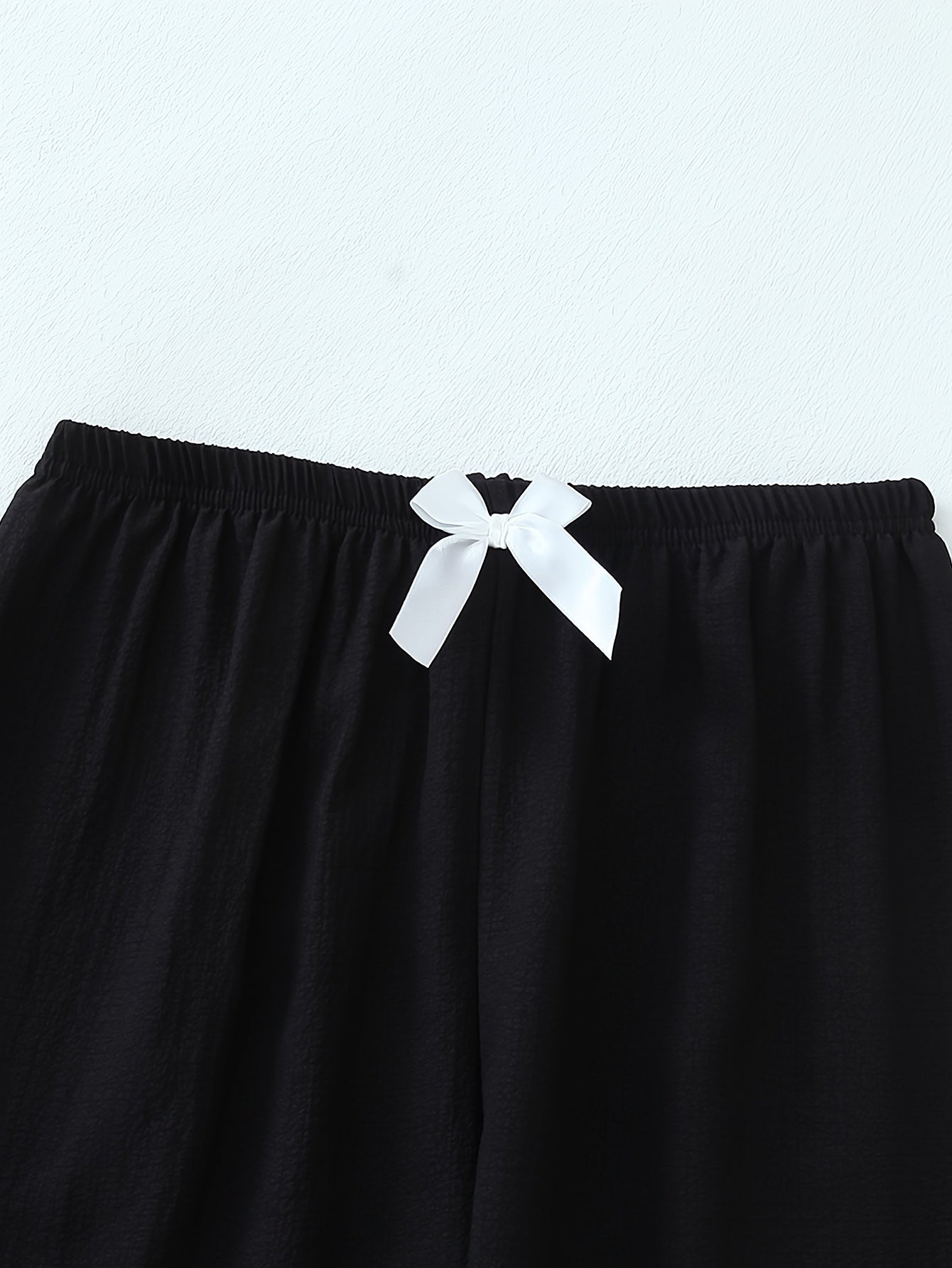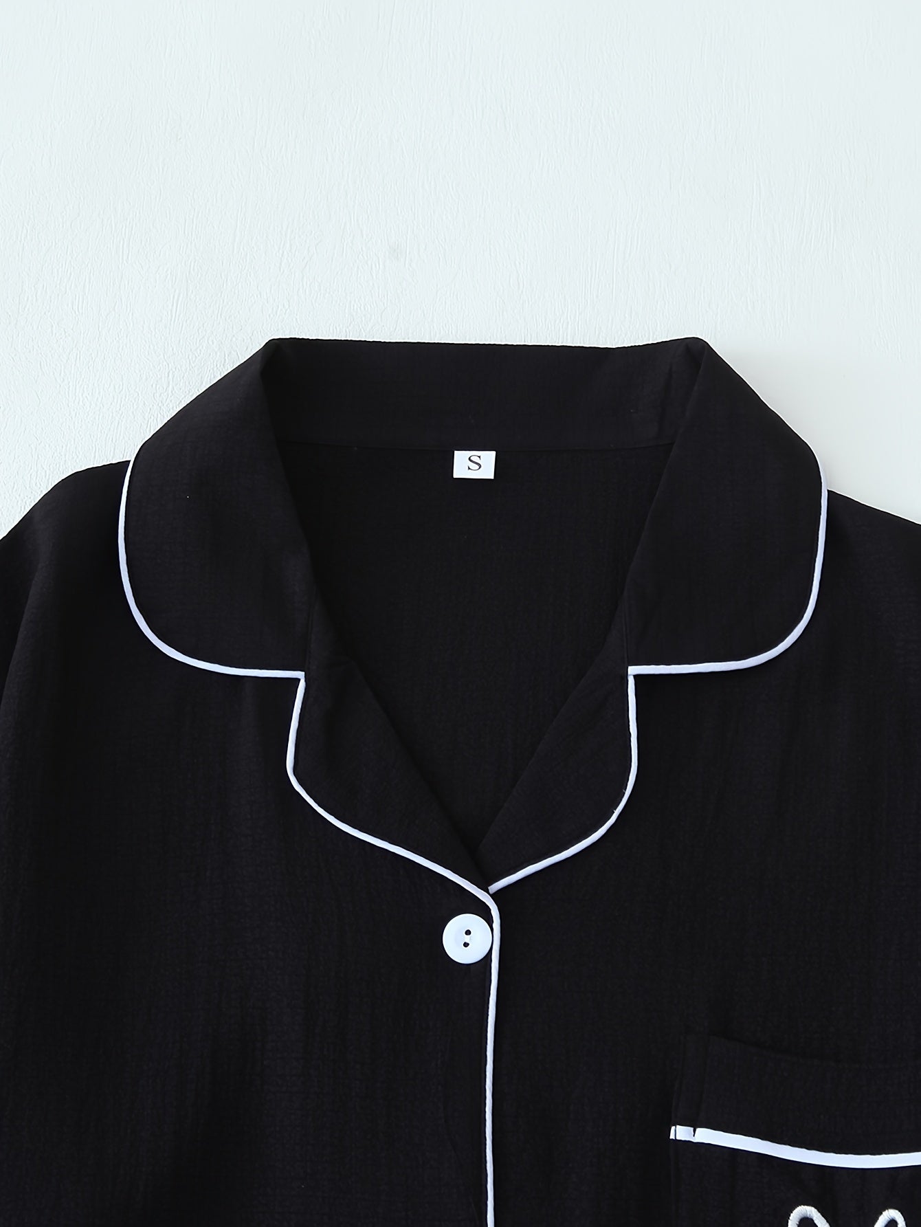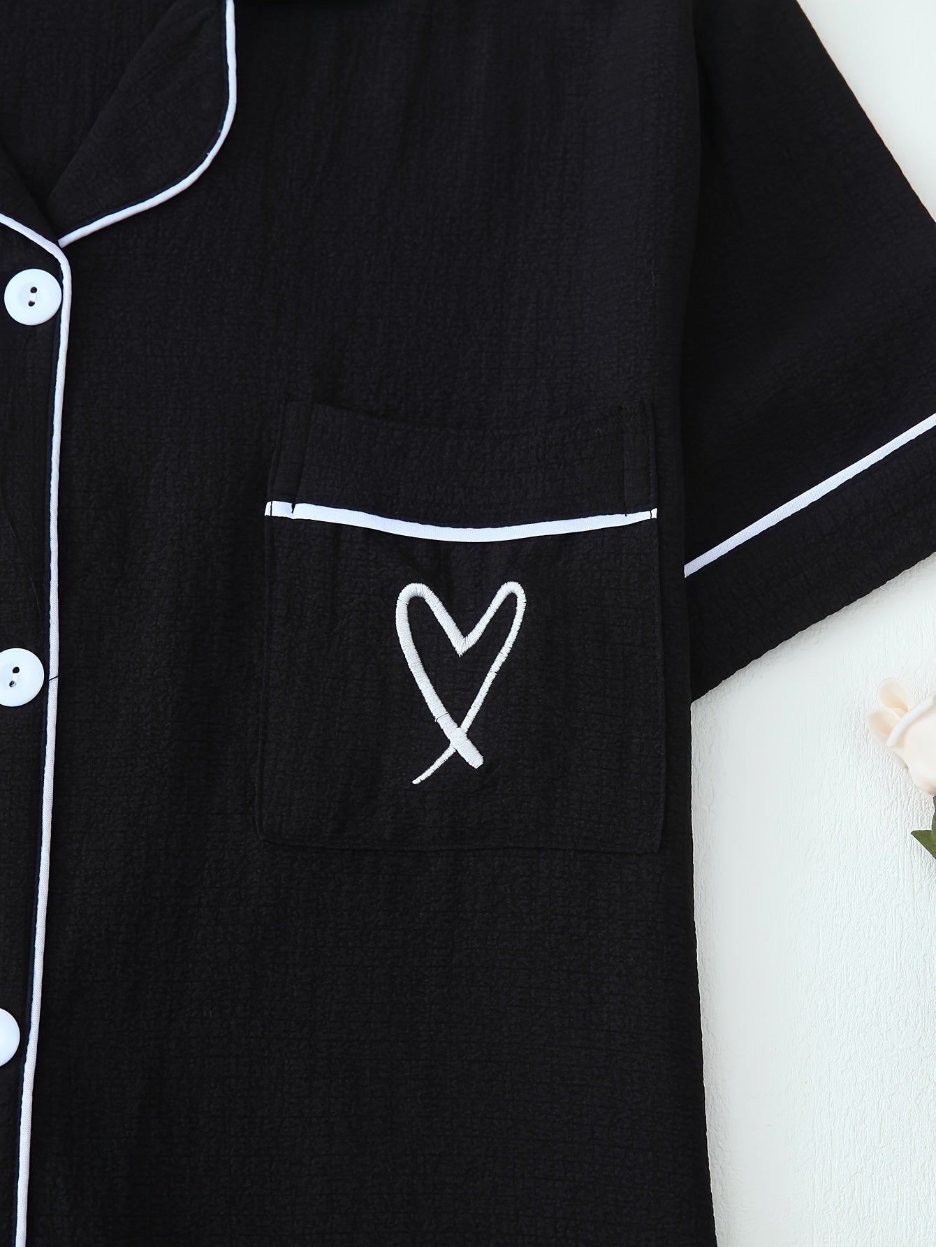 Women's Heart Embroidery Casual Pajama Set Short Sleeve Top and Long Pants