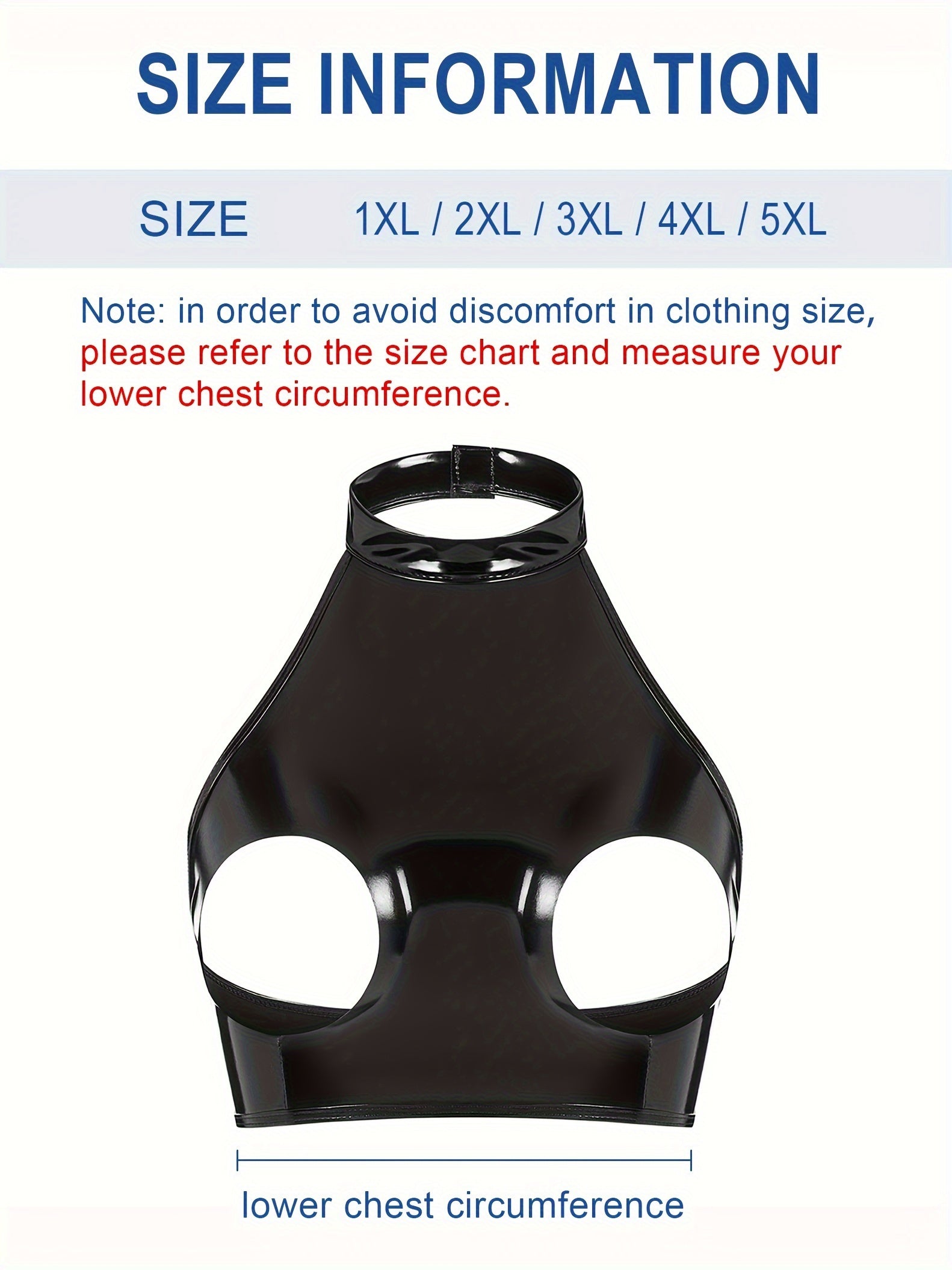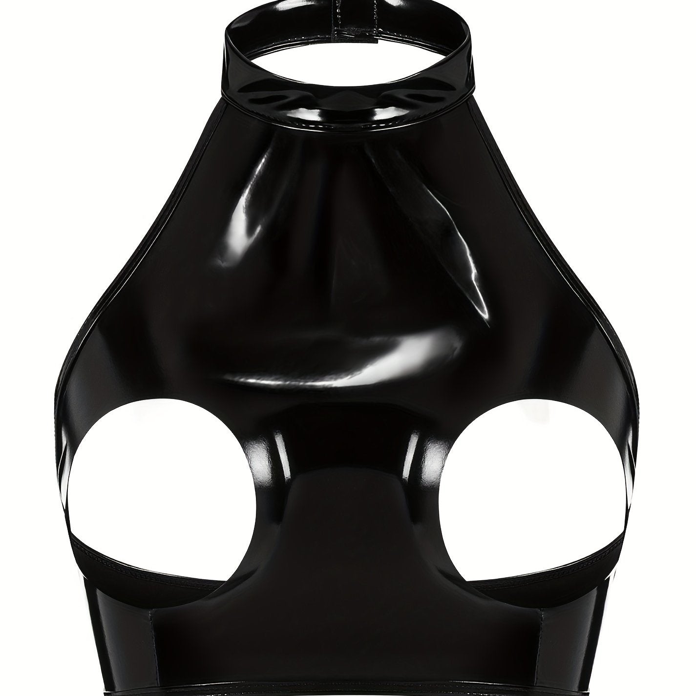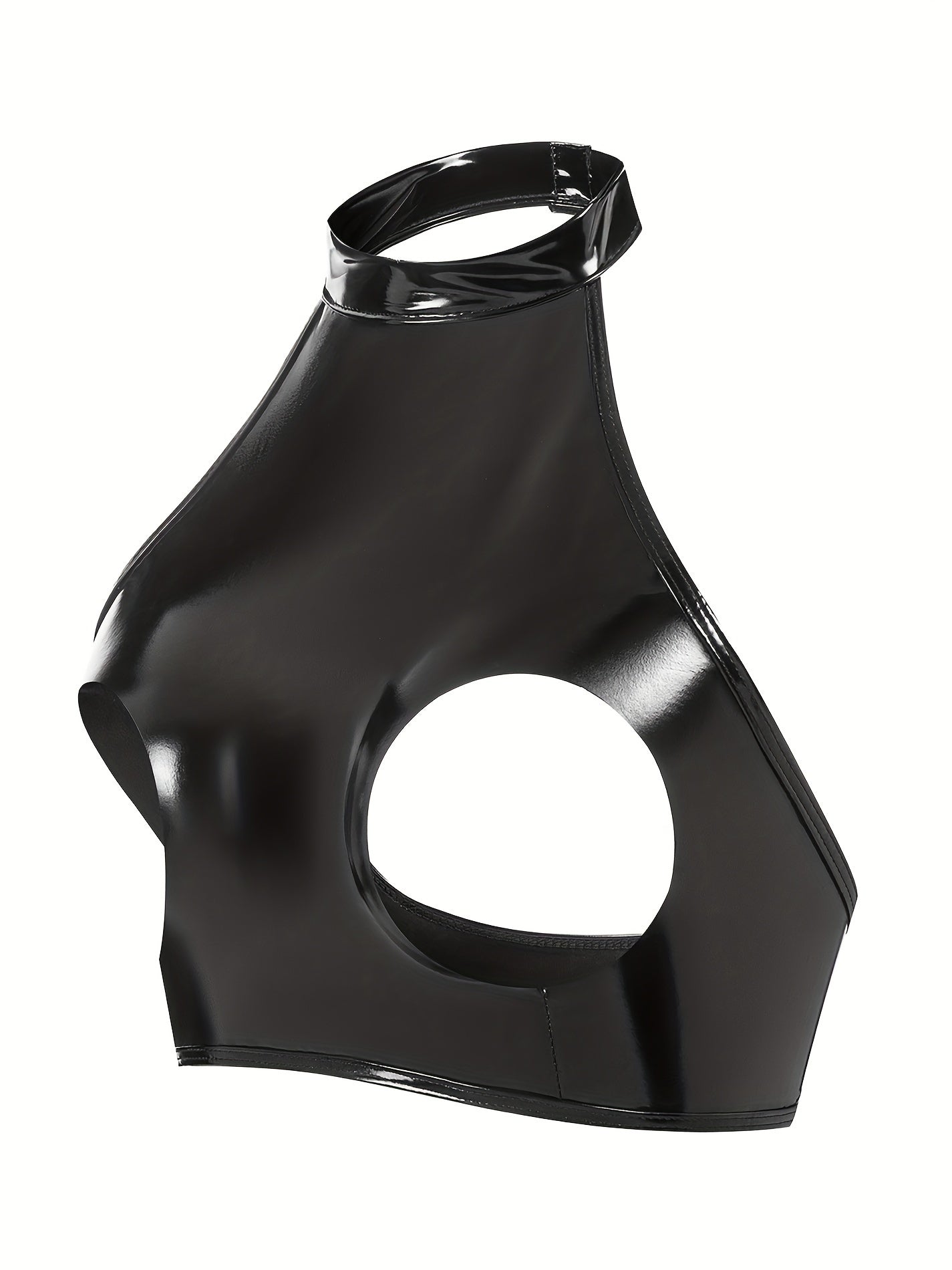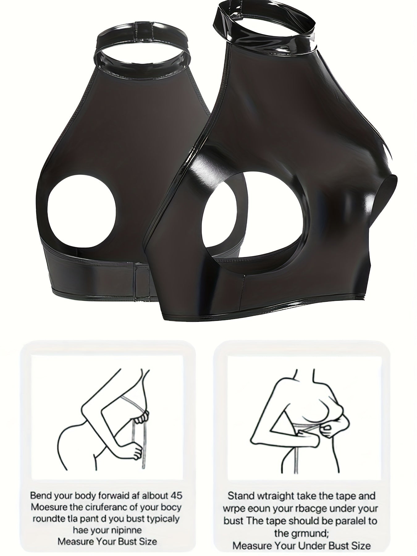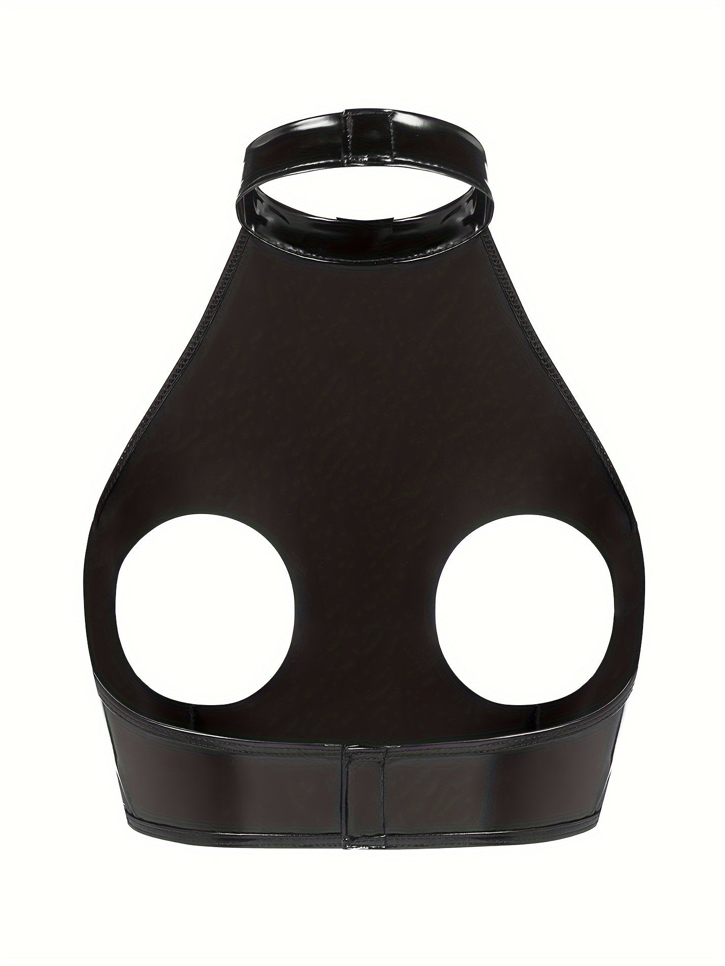 Women's High Gloss Patent Leather Open Chest Fun Bra Large Size